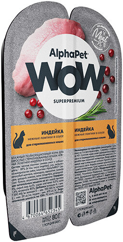 AlphaPet Корм влажный для стерилизованных кошек индейка в соусе 80 г
