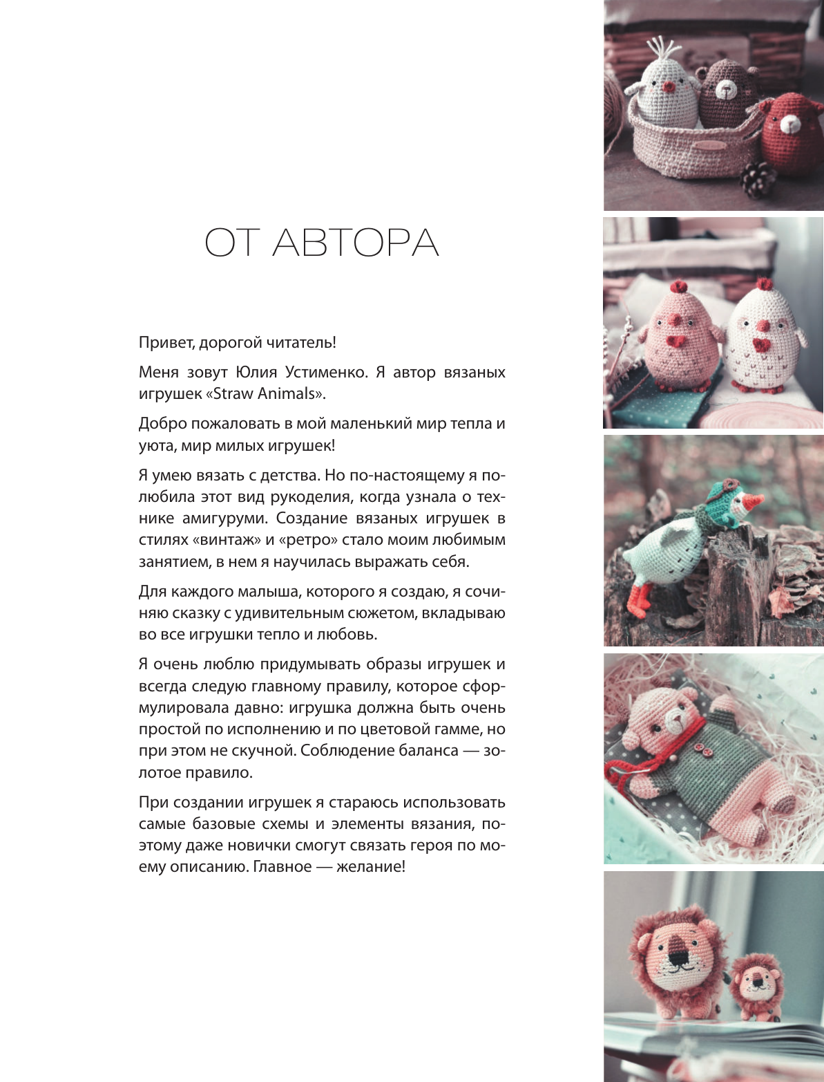 В этой книге вы найдете 10 оригинальных мастер-классов по созданию милых вязаных игрушек. Каждый проект, от пасхальных яиц-зверушек до куклы, — это пошаговое руководство, которое позволит даже новичкам освоить искусство вязания игрушек амигуруми.Все мастер-классы расположены по возрастанию уровня сложности и, постепенно переходя к более сложным проектам, вы наберетесь опыта и уверенности в вязании крючком. Особое внимание в книге уделено выбору материалов, различным техникам вязания и оформления игрушек, а также советам по уходу за ними.Эта книга — идеальный выбор для тех, кто хочет научиться создавать уникальные и полные любви вязаные игрушки. Она станет источником бесконечного вдохновения и теплых моментов для вас и ваших близких.