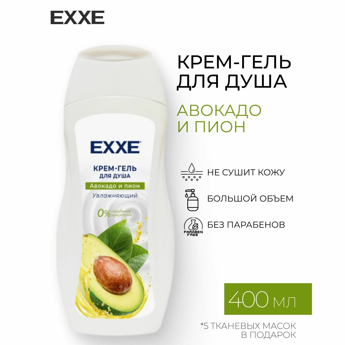 Крем-гель для душа Exxe Увлажняющий Авокадо и пион 400 мл