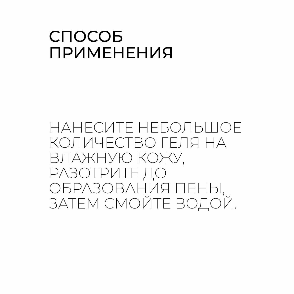 | Способ применения | нанести на влажную кожу, вспенить и смыть. |