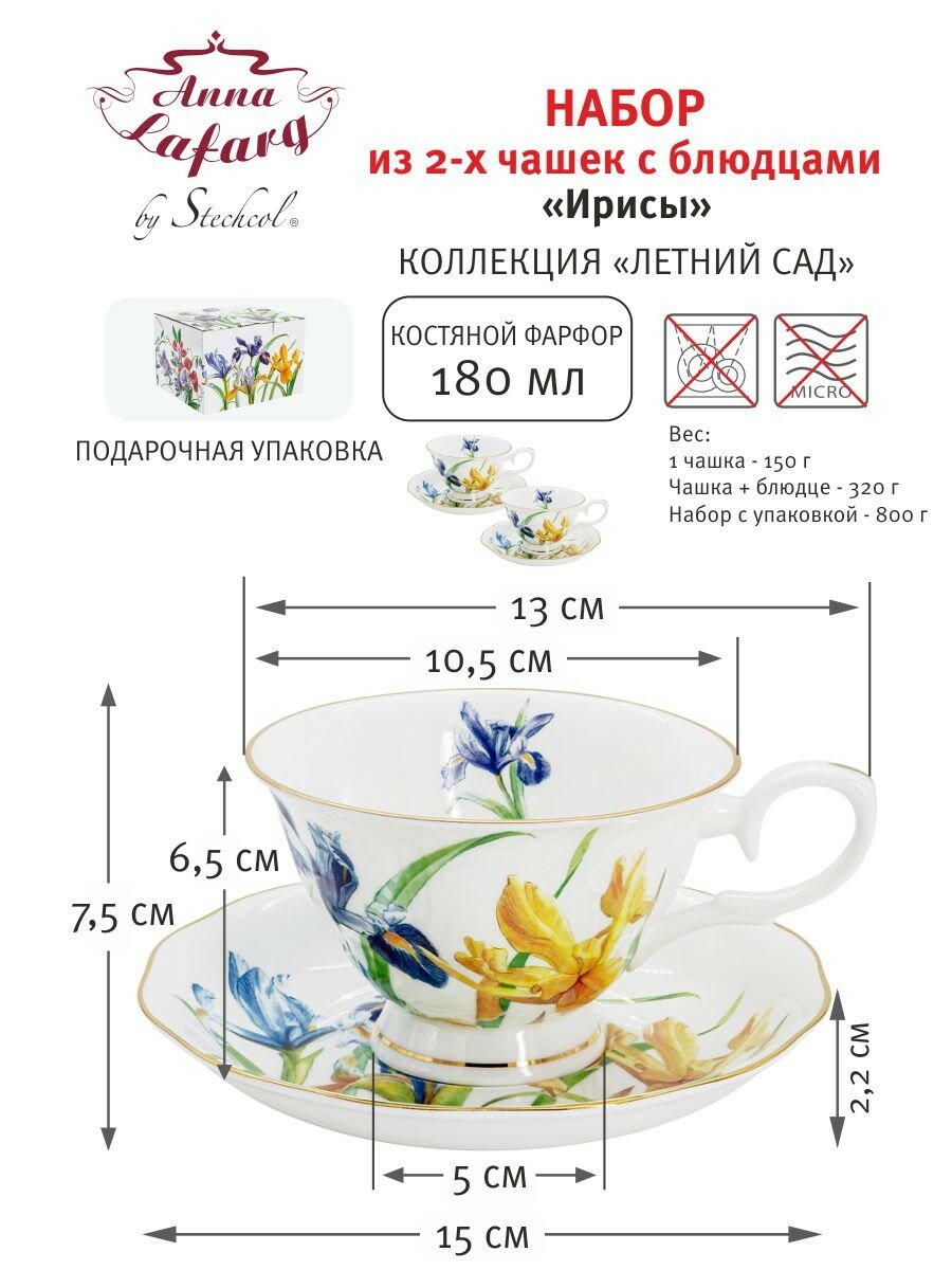 | Комплектация | Чашка 180 мл - 2 шт., блюдце 15 см - 2 шт. |