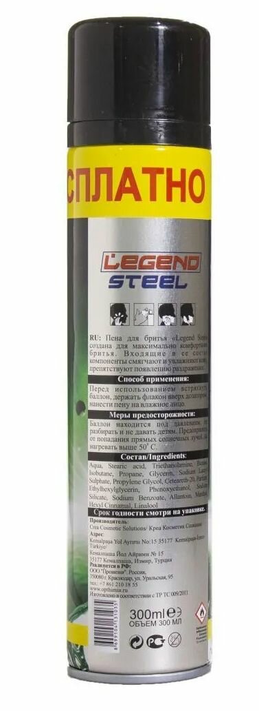 Сервис сравнения цен СкидкаГИД предлагает сравнить цены на товар «пена для бритья LEGEND STEEL Комфорт 300мл (8699104131035)»
