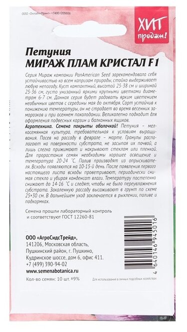 Сервис сравнения цен СкидкаГИД предлагает сравнить цены на товар «Семена цветов Агросидстрейд петуния Мираж Плам Кристал F1 10 шт.»