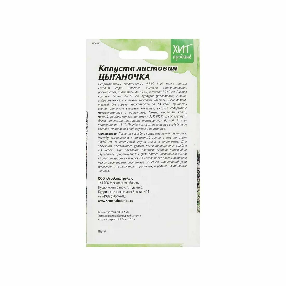 Сервис сравнения цен СкидкаГИД предлагает сравнить цены на товар «Семена овощей Агросидстрейд капуста листовая Цыганочка»