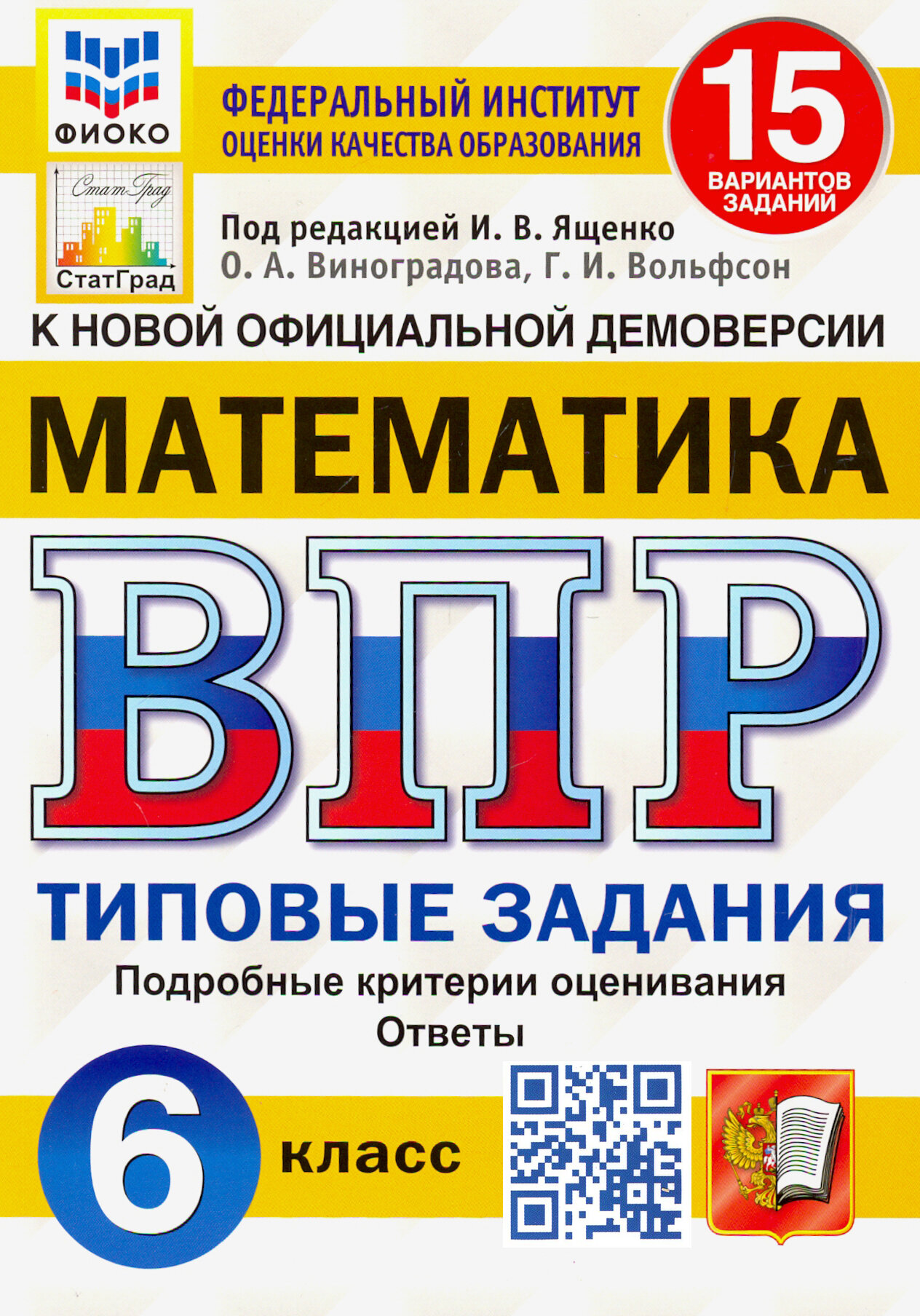 Математика. Всероссийская проверочная работа. 6 класс. 15 вариантов. Типовые задания. Подробные критерии оценивания. Ответы. ФГОС Новый (Иван Валерьевич Ященко, Георгий Игоревич Вольфсон, Ольга Александровна Виноградова); Экзамен, 2025