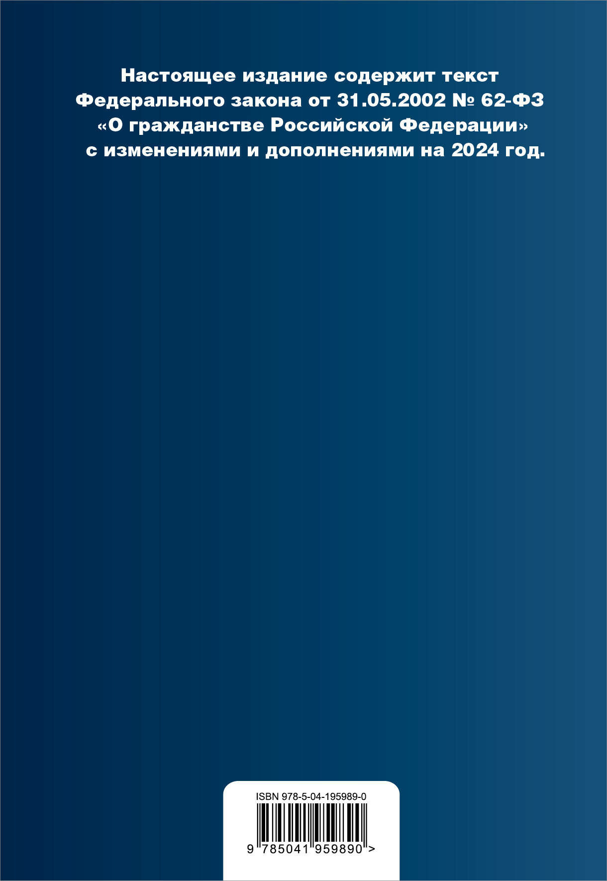 Настоящее издание содержит текст Федерального закона от 31.05.2002 N 62-ФЗ "О гражданстве Российской Федерации" с изменениями и дополнениями на 2024 год.