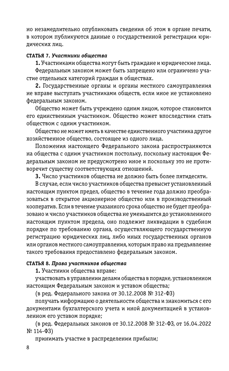 Настоящее издание содержит текст Федерального закона от 8 февраля 1998 года № 14-ФЗ «Об обществах с ограниченной ответственностью» с изменениями и дополнениями на 2024 год. Если есть изменения, вступающие в силу позднее, то вместе с редакцией нормы, действующей на эту дату, приводится норма в новой редакции и указывается дата, с которой она вступает в силу.