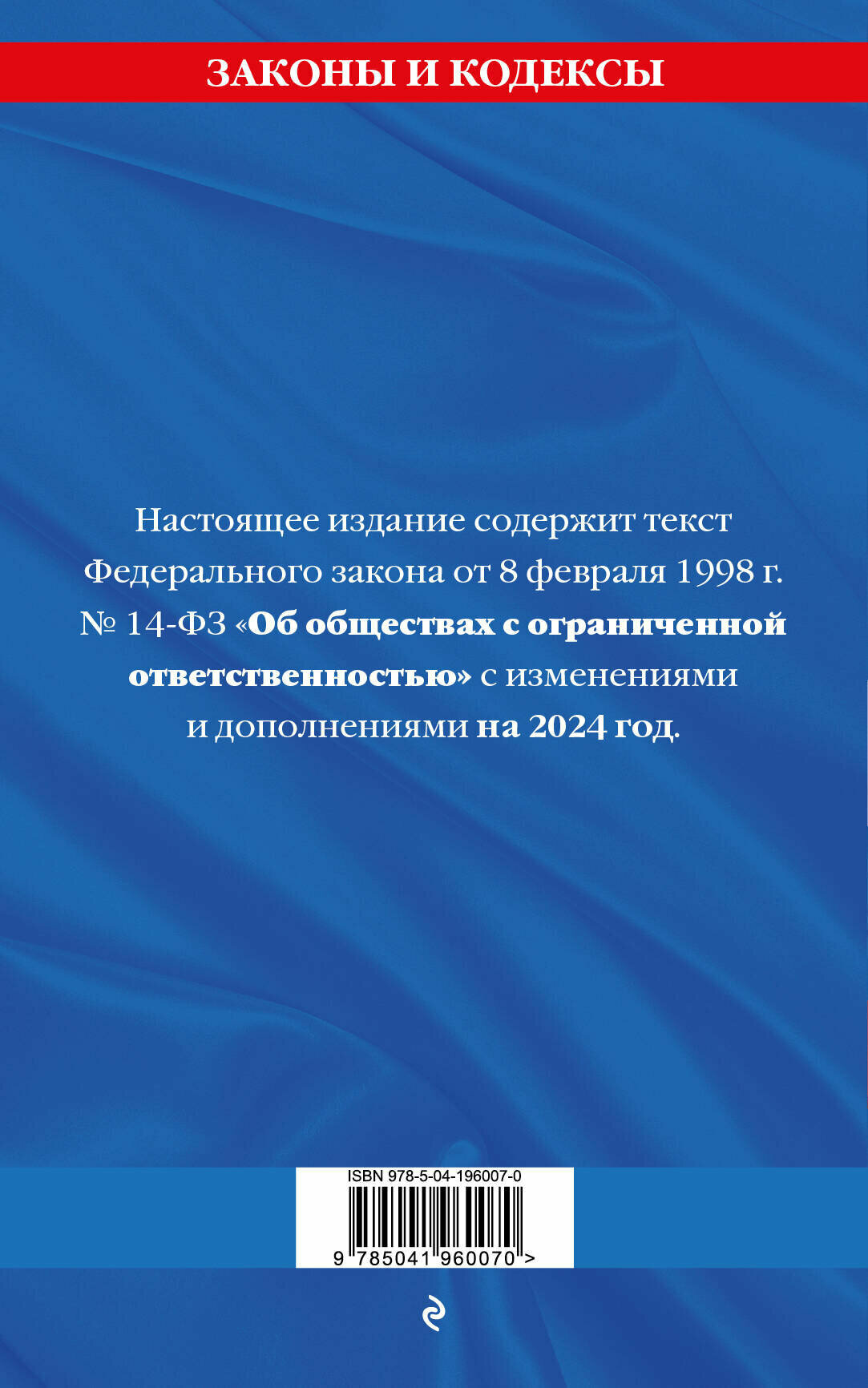 Федеральный Закон "Об обществах с ограниченной ответственностью" с изменениями и дополнениями на 2024 год (без автора); ООО "Издательство "Эксмо", 2024