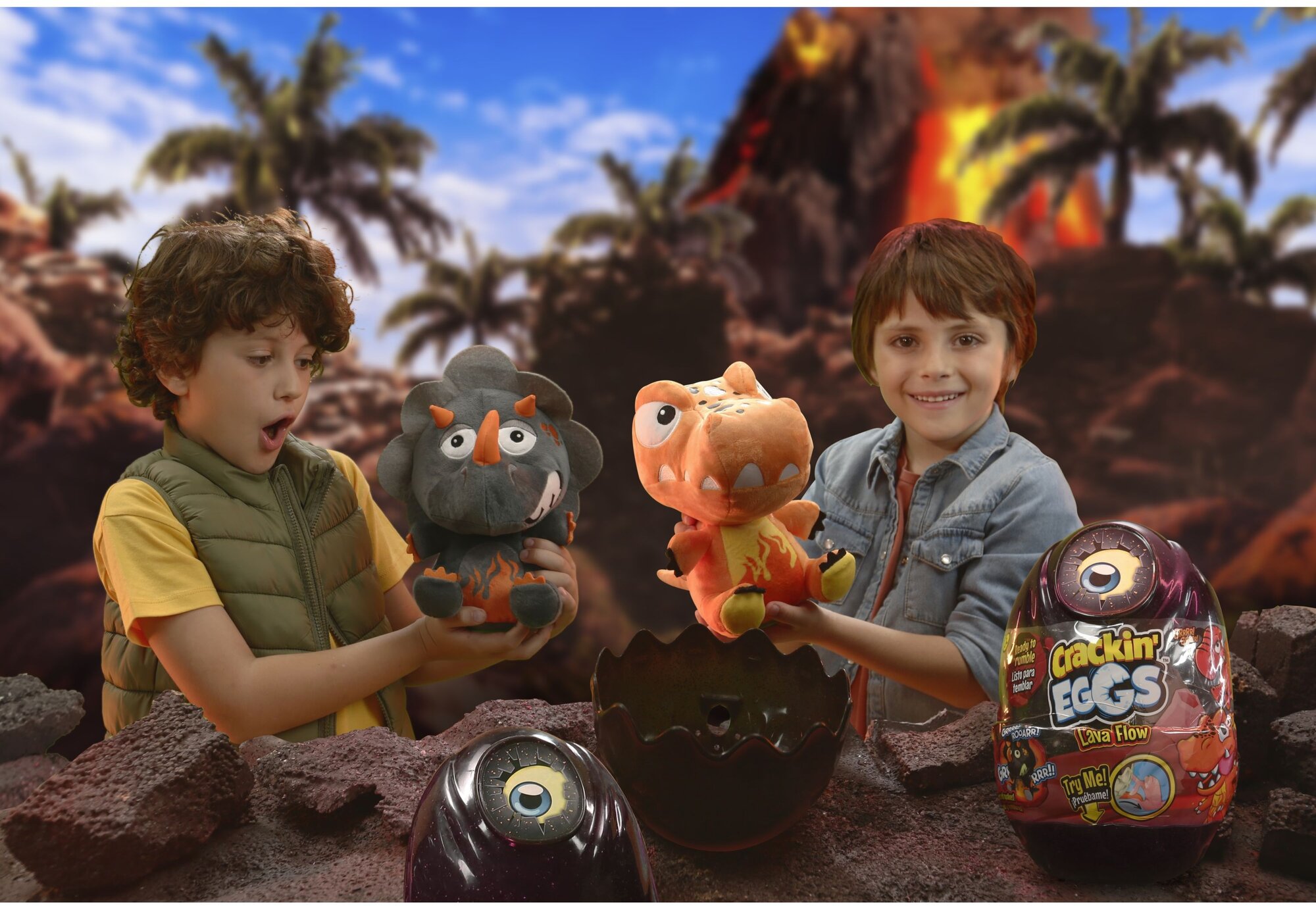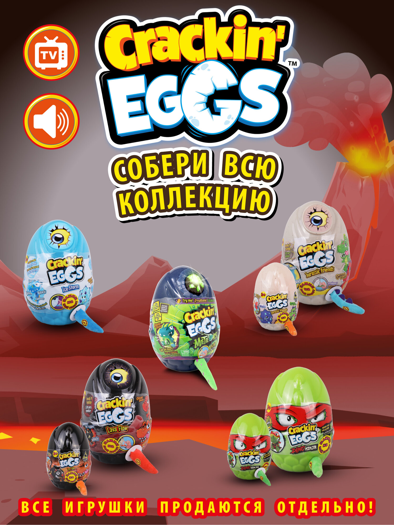Откройте для себя забавный сюрприз, скрытый в яйце Cracking Eggs Lava Flow! Внутри яйца вас ждет удивительный сюрприз, из каждого яйца торчит наружу забавный хвост. Если вы нажмете на хвост, то услышите звуки рычания, и яйцо начнет трястись. Чего же вы ждете? Скорее познакомьтесь с плюшевым динозавром, который прячется внутри! В серию Cracking Eggs Lava Flow входят три динозаврика разных цветов, которые прячутся в экологичной упаковке. Игрушка работает от батареек 2хААА, в комплекте демонстрационные.