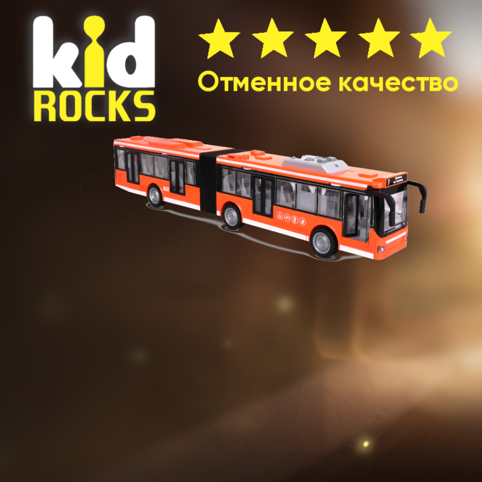 Модель автобуса гармошки KID ROCKS - прекрасный подарок для маленького любителя различных видов транспорта. Реалистичный дизайн этой игрушки обеспечит ребенку максимальное погружение в игру и поможет познакомить ребенка с видами общественного транспорта. Особенности игрушки: Оснащена инерционным механизмом. Издает звуки гудка, движущегося транспорта, открывания дверей. Подсветка салона. Прозрачные стекла, через которые виден салон транспорта. Высокий уровень детализации. Изготовлена из безопасной для детей пластмассы. Отличное качество исполнения. Игрушка работает от 3 батареек AG13, в комплекте демонстрационные.