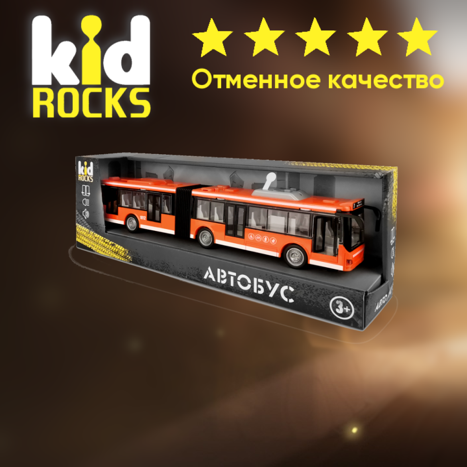 Автобус гармошка Kid Rocks со звуком и светом инерционный механизм 1:16 арт. YK-2104
