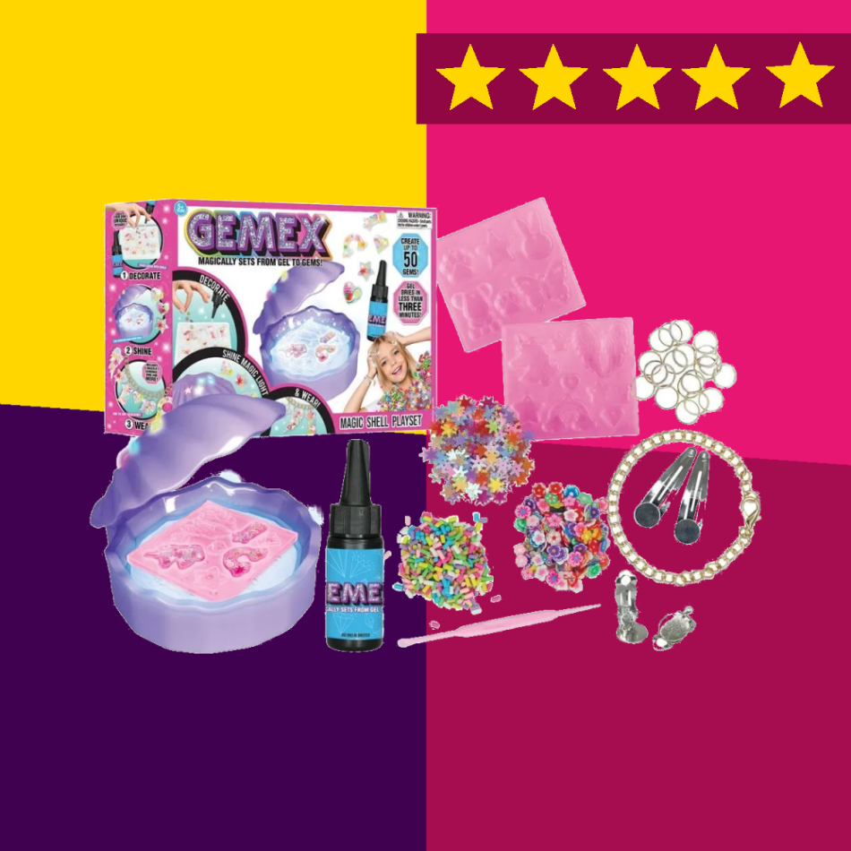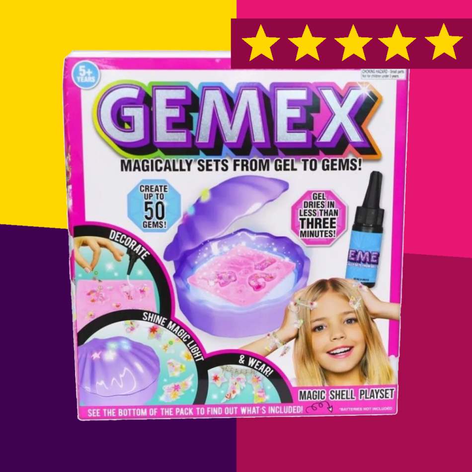 Игровой набор для игры в раковины моллюсков Gemex;Gemex - это волшебство прямо на ваших глазах. Просто украсьте, придайте блеск и носите свое творение Gemex за считанные минуты. Налейте жидкость в форму, добавьте украшения и выложите в волшебную раскладушку. Звездочки будут мигать в течение 3 минут, и вуаля, ваш драгоценный камень превратился в твердый пластик. Малыши могут создать до 50 драгоценных камней с помощью игрового набора magic shell.Предупреждение - Опасность удушения - Дети младше 3 летЭта игрушка не подходит для детей младше 3 лет. Он содержит один или несколько из следующих предметов: шарики; маленький шарик; или мелкие детали.Рекомендуемый возраст: Подходит для детей от 5 лет и старше