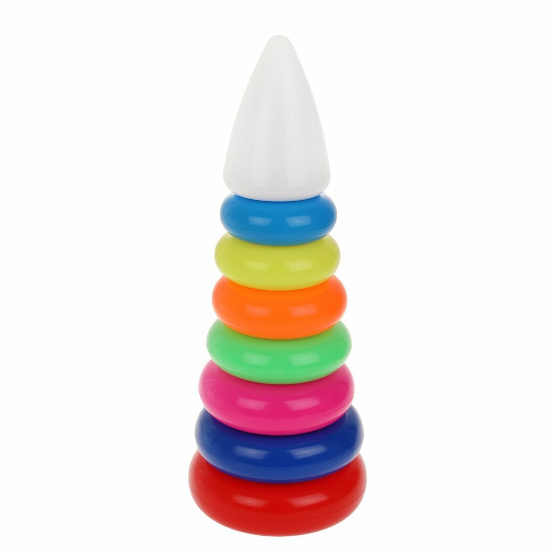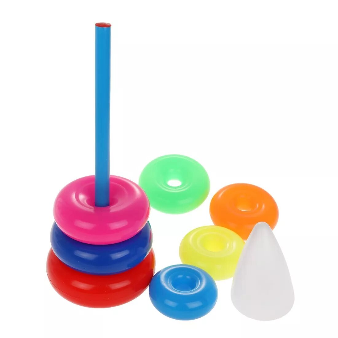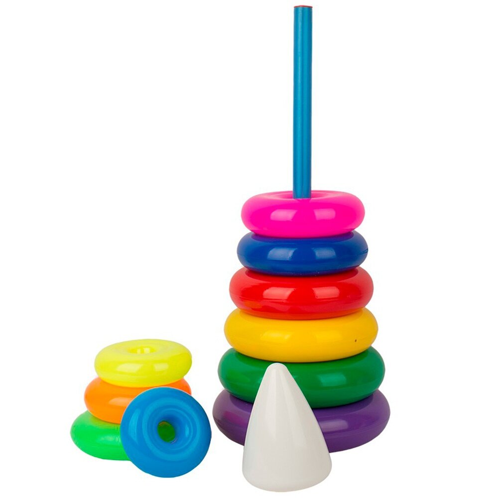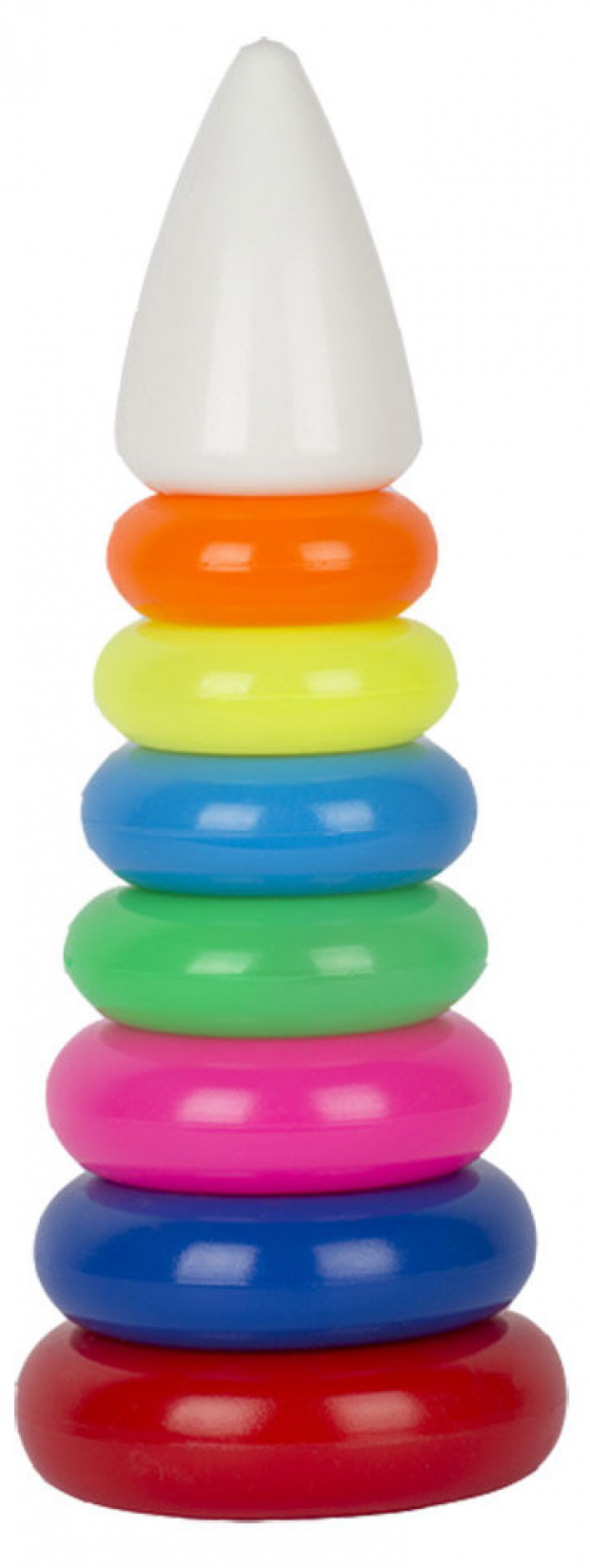 Пирамидка "Гигант" получила свое название не просто так - ее высота в собранном виде составляет 45 см, целая башня для малыша. Составляется пирамидка из крупных разноцветных колец, а сверху увенчивается конусообразным элементом. Цвета деталей пирамидки - яркие и сочные, они будут привлекать внимание ребенка. Игра с пирамидкой полезна для развития моторики, логического мышления. Используя элементы пирамидки можно познакомить ребенка с геометрической фигурой - кругом.