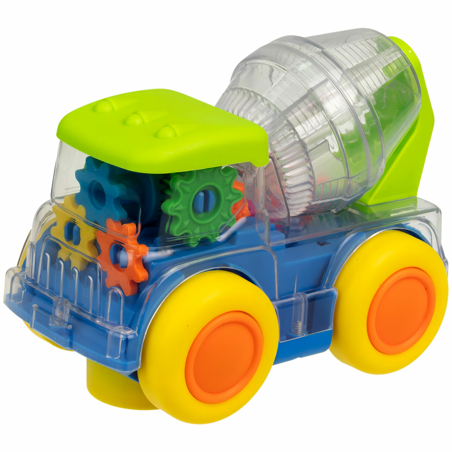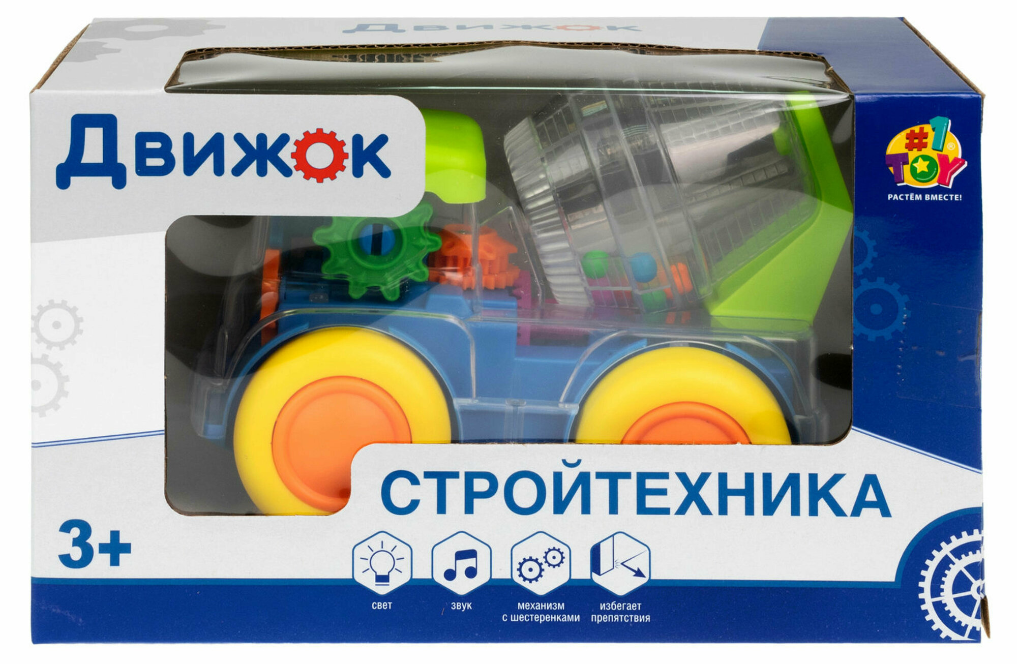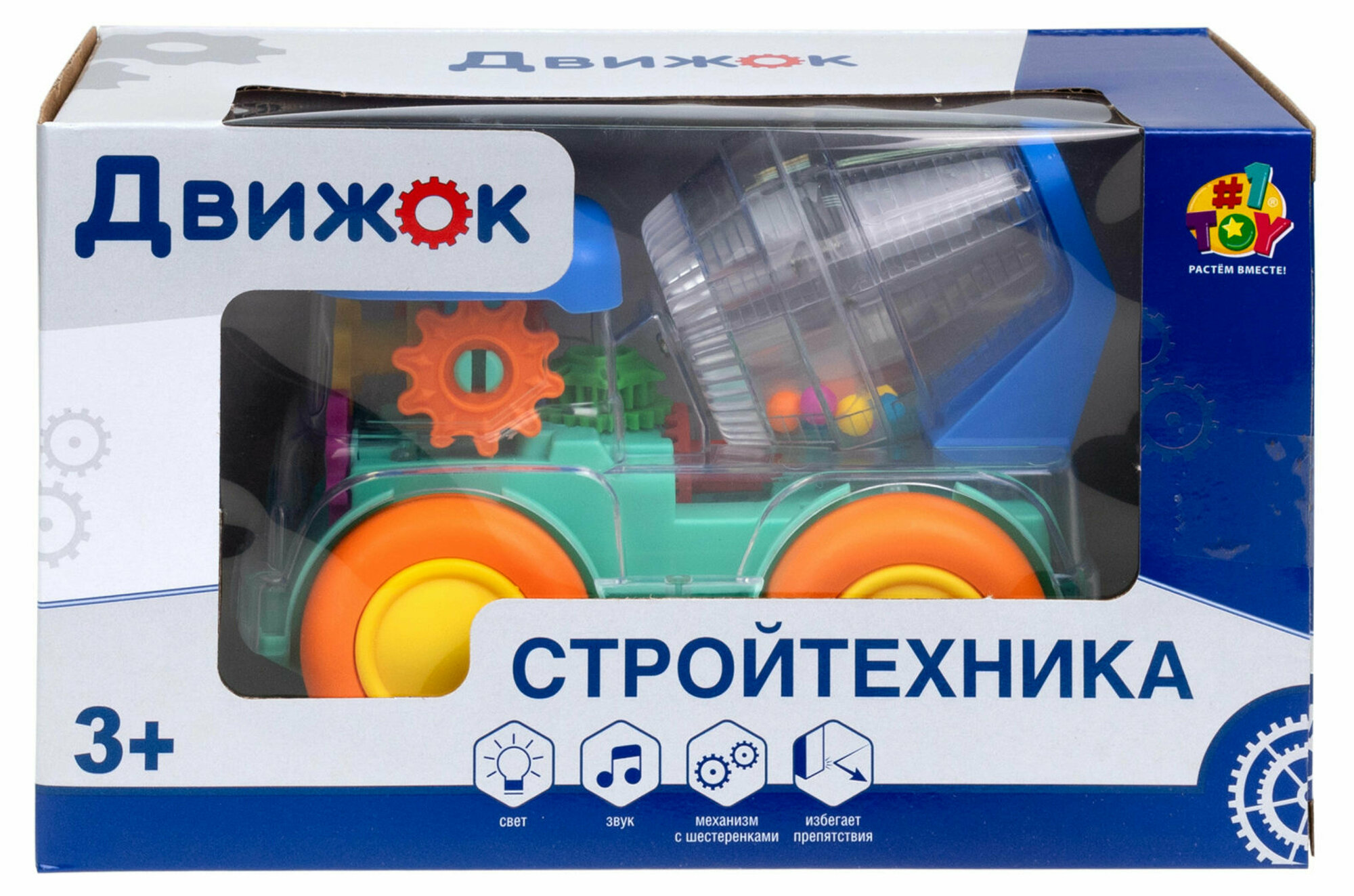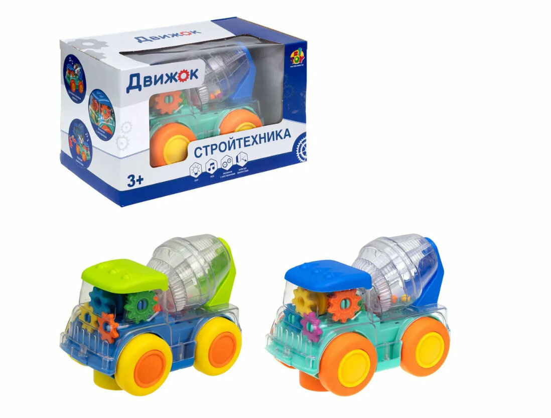 Детская игрушка "Движок" от бренда 1TOY в форме бетономешалки - это яркая электромеханическая машинка со световыми и звуковыми эффектами! Работает от 3-х элементов питания АА (1,5B), не входят в комплект. У бетономешалки прозрачный корпус и внутри машинки есть подсветка и движущиеся детали. В бочонке бетономешалки разноцветные пластиковые шарики, которые при вращении, забавно крутятся. Материал: пластмасса. Игрушка предназначена для детей от 3-х лет.