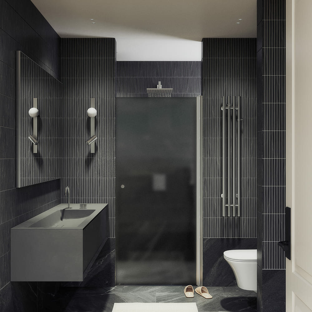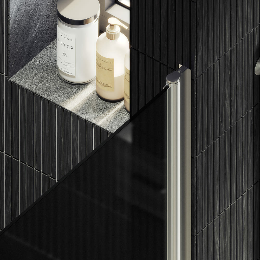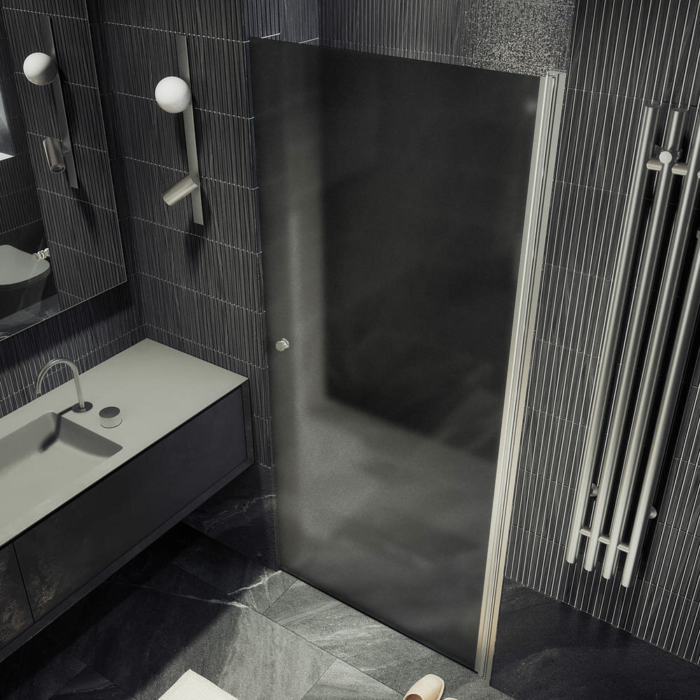 - Исполнение полотна двери: графитовое матовое закаленное стекло, толщиной 6 мм.