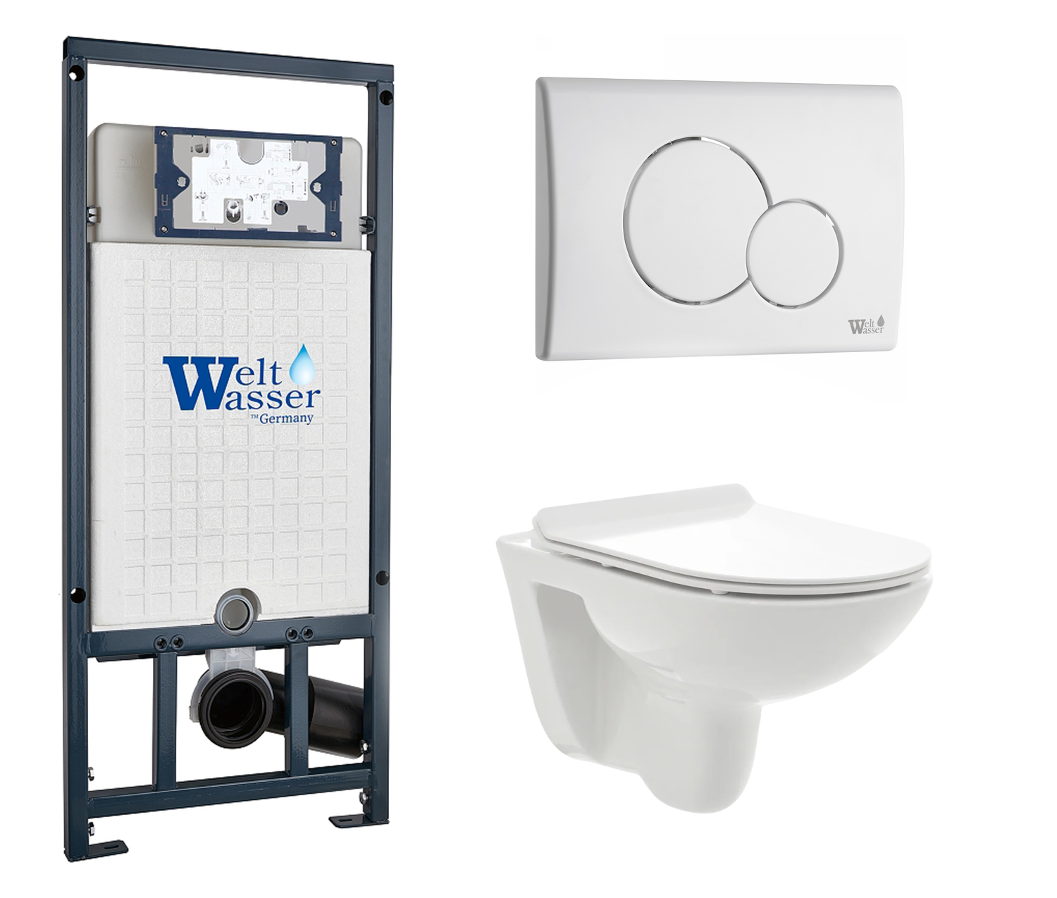 Комплект 3 в 1 инсталляция WeltWasser WW Amberg 507 + Унитаз подвесной AQUAme AQM2008 с кнопкой белой RD 10000005949 + 10000010236 + AQM2008