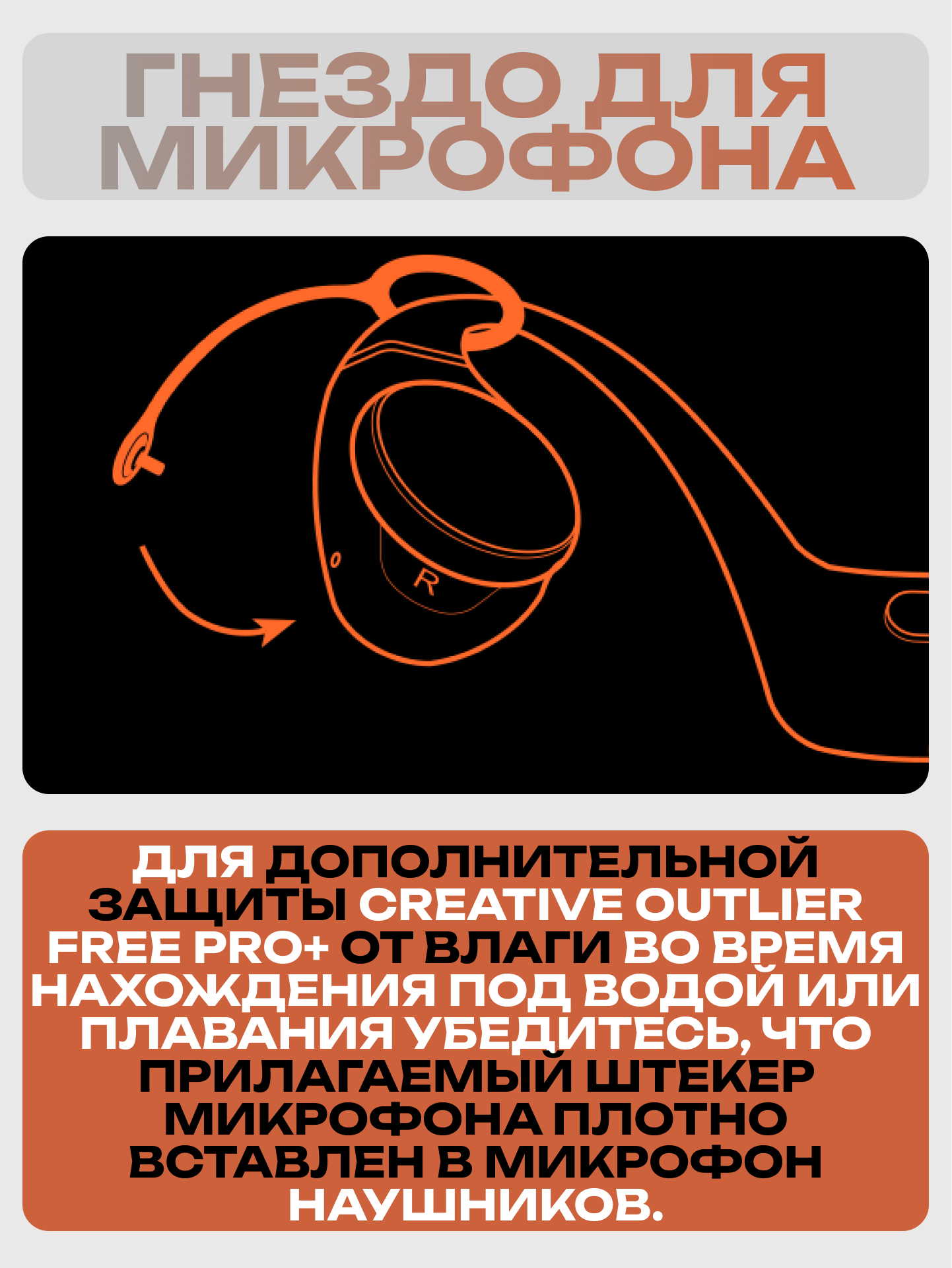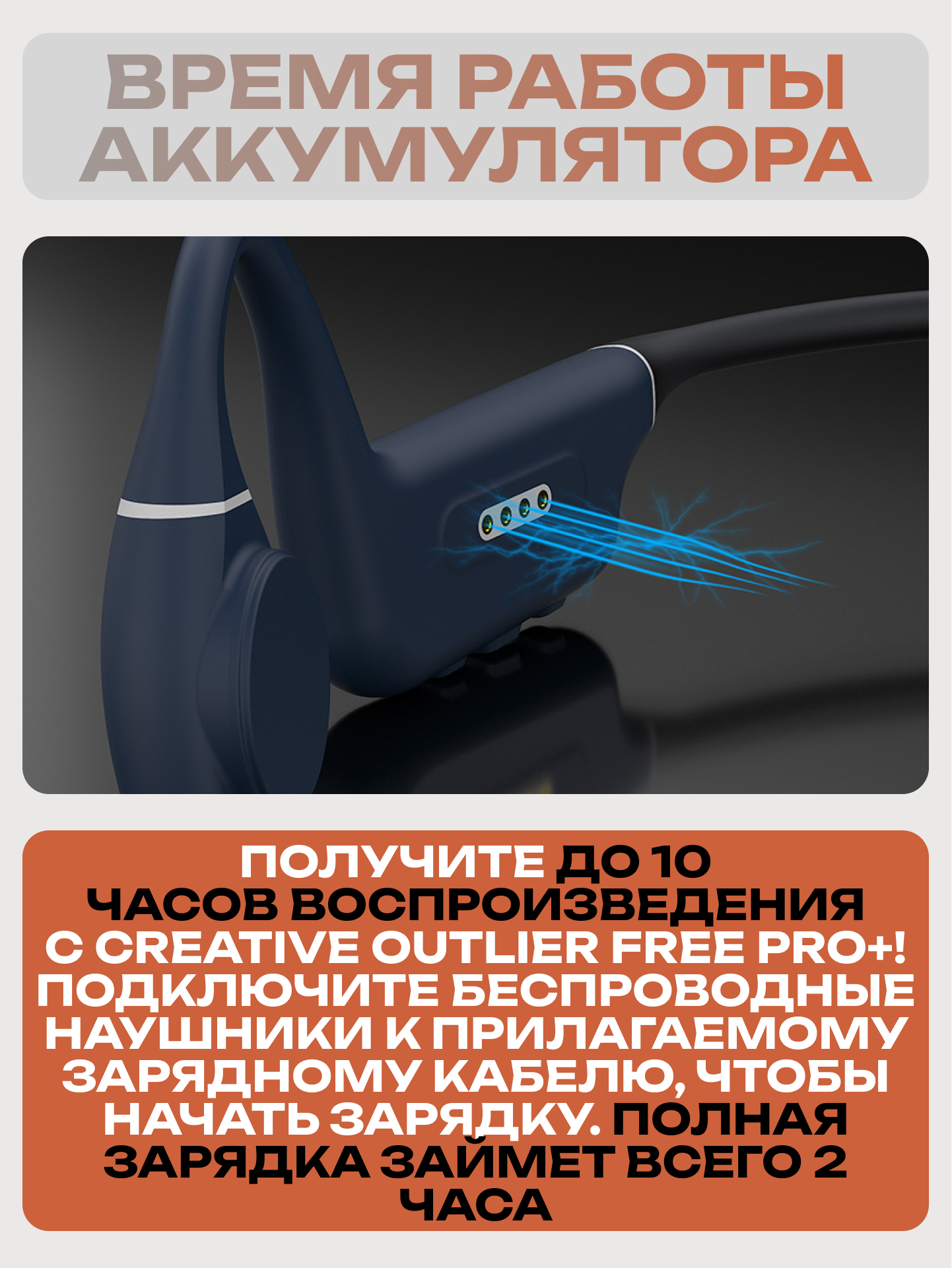 Оставайтесь всегда на связи и не теряйте бдительность с Creative Outlier Free Pro+. Беспроводные наушники с костной проводимостью предлагают все лучшее: высококачественное воспроизведение аудио, при котором уши остаются открытыми, что обеспечивает улучшенную осведомленность об окружающей обстановке в любое время. Creative Outlier Free Pro+ использует технологию костной проводимости для передачи звуков непосредственно на кости внутреннего уха посредством вибрации через скулы, которые передают звуковые волны, позволяя вам ощутить высококачественную акустику. Благодаря технологии костной проводимости уши остаются открытыми, что позволяет вам всегда быть в курсе того, что вас окружает. Изготовленные из легкого силикона и титанового сплава с памятью формы, наушники эргономично спроектированы, чтобы противостоять сгибанию и обеспечивать оптимальный комфорт каждый день, всегда. Благодаря уникальной конструкции заушника преобразователи надежно повторяют естественный изгиб ушей, что позволяет держать ухо открытым, обеспечивая при этом надежную фиксацию. Прыгайте, поднимайтесь или бегайте — они не сдвинутся с места!