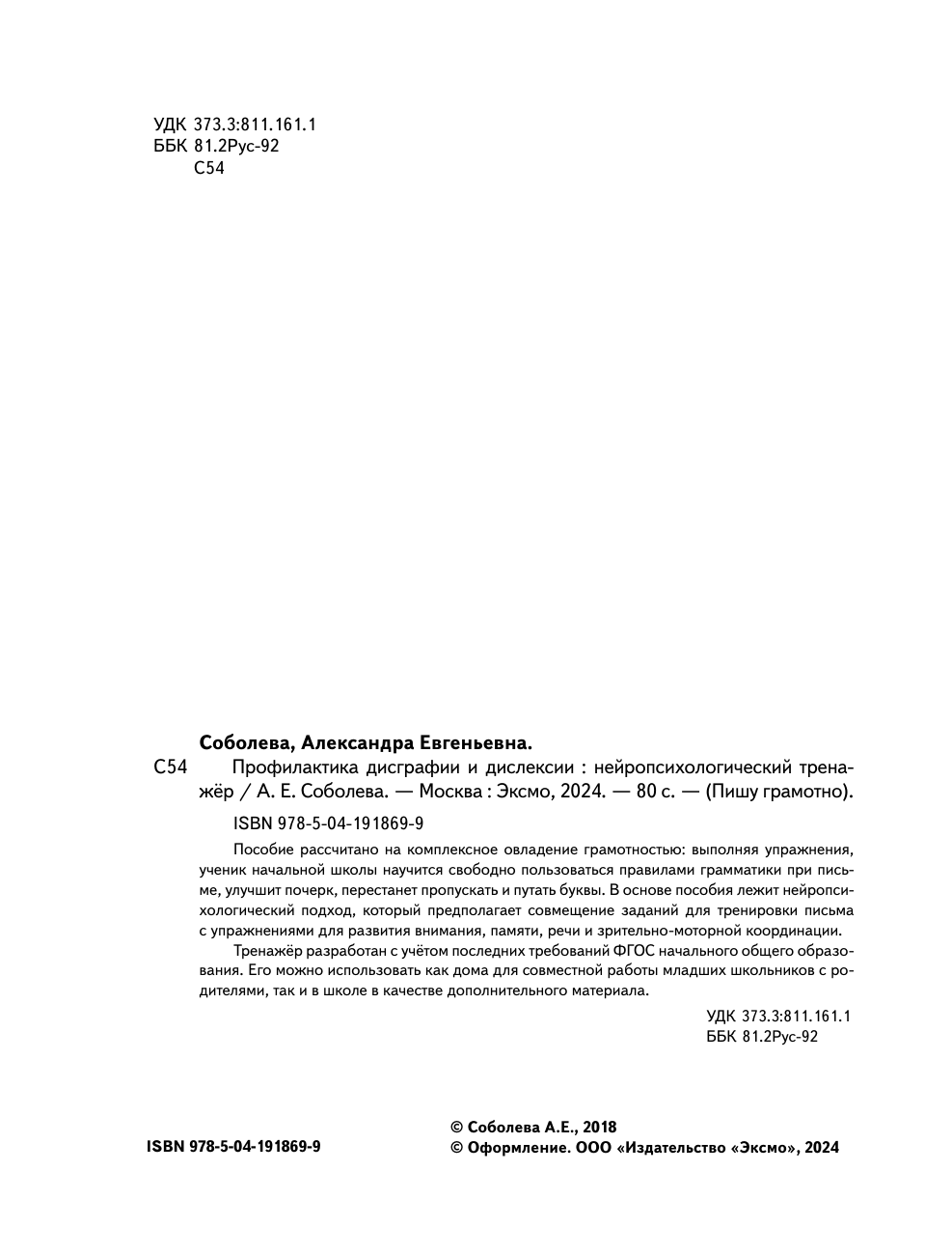 Профилактика дисграфии и дислексии. Нейропсихологический тренажер (Александра Евгеньевна Соболева); Эксмо, 2025