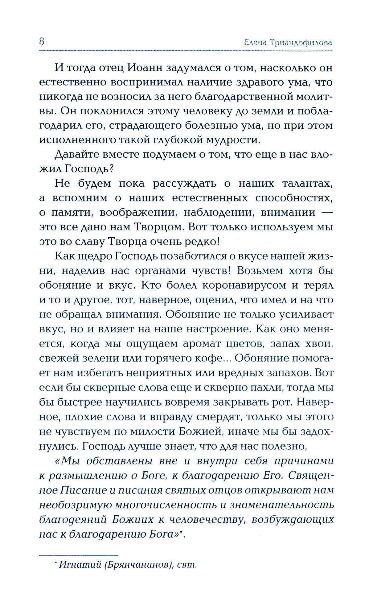 Книга «Тайна благодарения» для тех, у кого слабая вера, кто страдает от уныния и страхов, кто находится в трудной или безвыходной ситуации, кто не может справиться со злопамятством, ропотом или завистью. Она будет полезна тем, кто только пришел в Церковь, и тем, кто давно считает себя воцерковленным человеком, но чья молитва стала формальной, а жизнь скучной и однообразной. Примеры из жизни и практические рекомендации, приведенные в книге, помогут читателю учиться благодарению в своей жизни и искренне восторгаться, постигая шаг за шагом эту тайну зрения Промысла и доверия Богу во всем.
