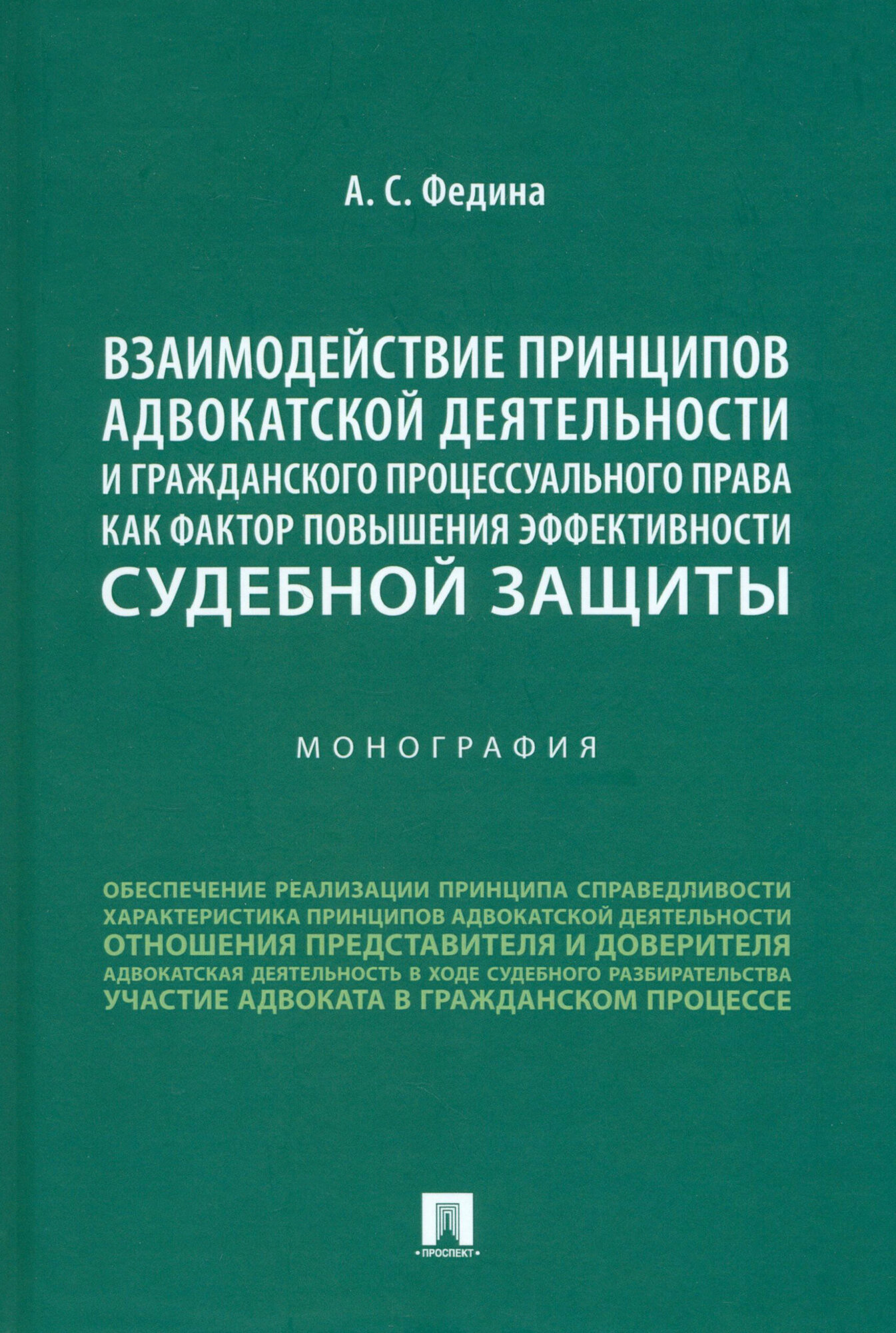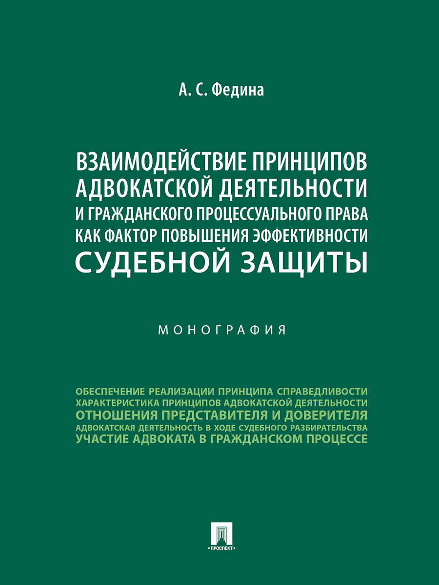 Взаимодействие принципов адвокатской деятельности и гражданского процессуального права (Федина Анжелика Сергеевна); Проспект, 2024