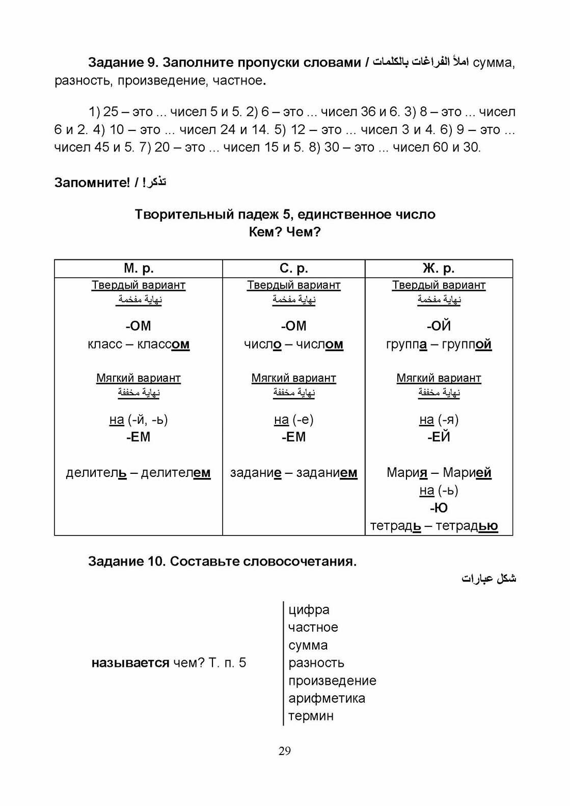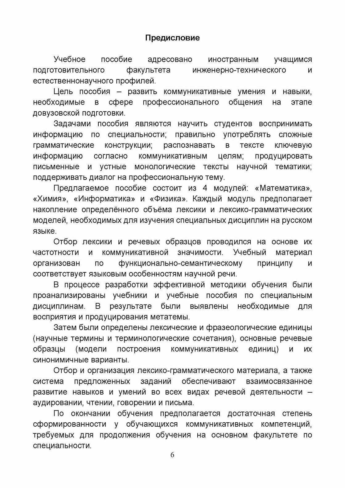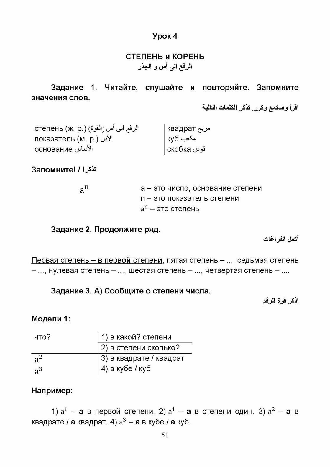Пособие адресовано иностранным студентам инженерно-технического и естественнонаучного профилей, начинающим изучать русский язык. Цель пособия - формирование коммуникативных навыков и умений, необходимых для общения в учебно-профессиональной сфере, а также подготовка студентов-иностранцев к практическим занятиям по специальным предметам: математика, химия, информатика и физика. Задания и комментарии к грамматическому материалу переведены на арабский язык.