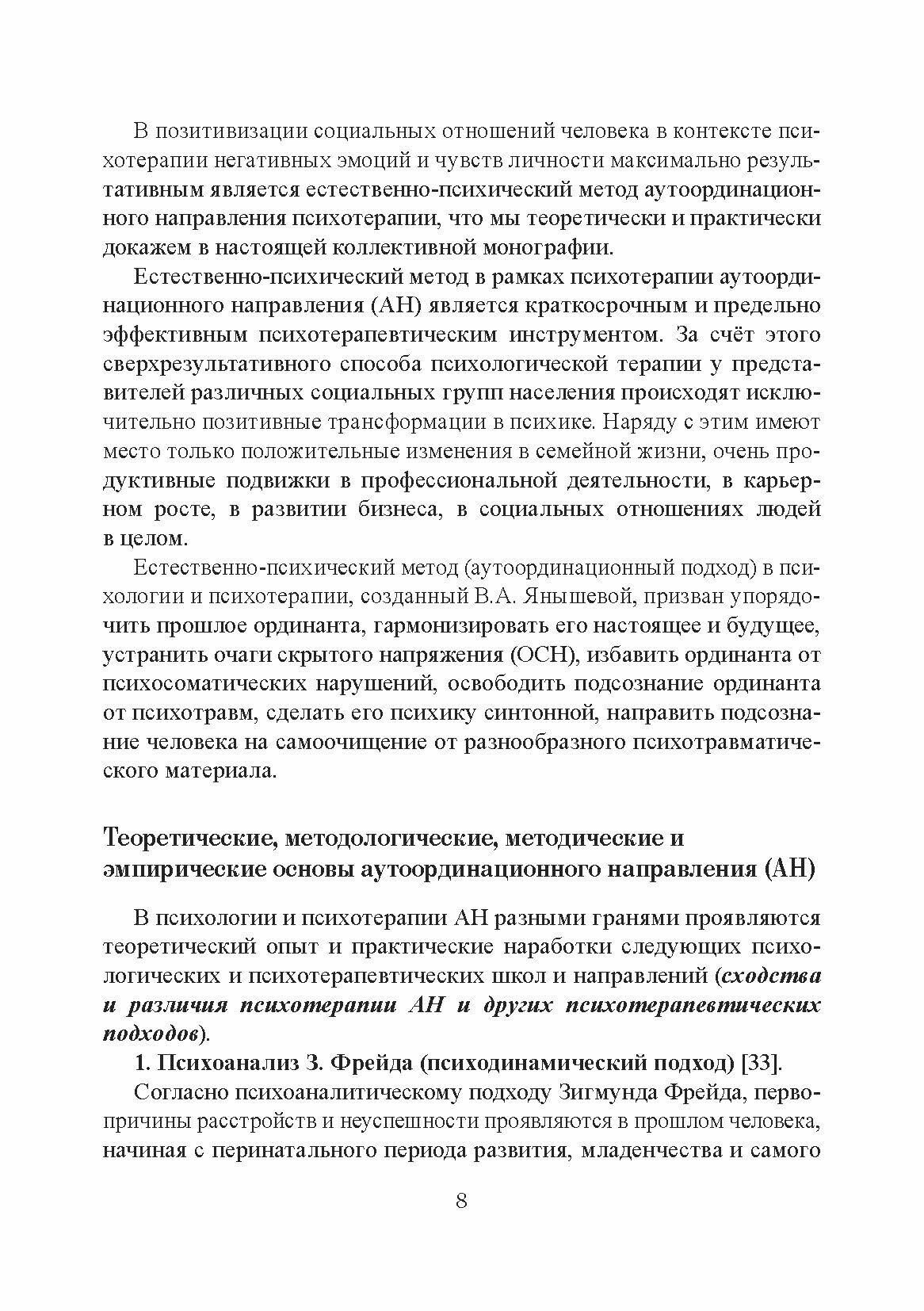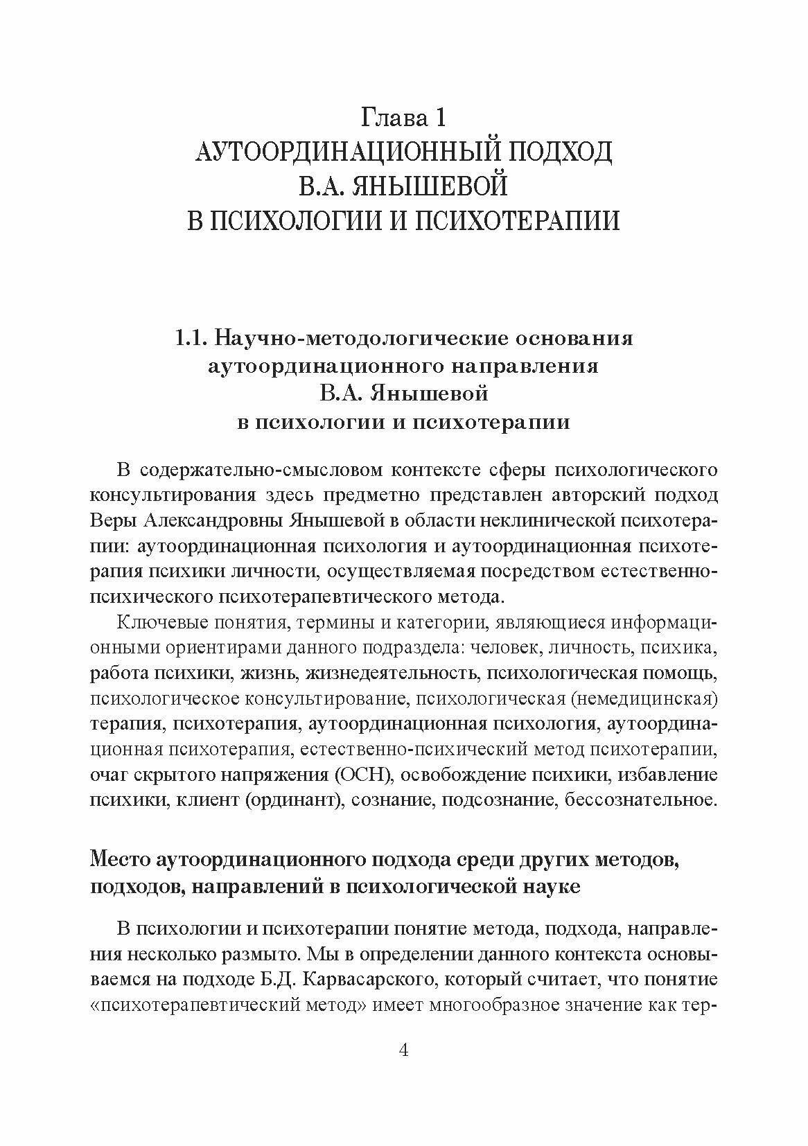 Представлено эмпирико-экспериментальное исследование психологической помощи и развития личности в аутоординационном подходе В. А. Янышевой: аутоординационная психология и психотерапия психики человека естественно-психическим методом. Монография предназначена для студентов бакалавриата, специалитета, магистратуры, аспирантуры, профессиональной переподготовки и повышения квалификации всех психологических специальностей и направлений подготовки; профессионалов-психологов, - психологов-консультантов, психологов-психотерапевтов, психологов-психодиагностов, преподавателей практикоориентированных психологических дисциплин, научных сотрудников-психологов, возрастных психологов, клинических психологов, а также социальных, служебных, военных, управленческих, транспортных, спортивных, пенитенциарных, экстремальных психологов и других специалистов - практических психологов, производящих немедицинскую психотерапию.