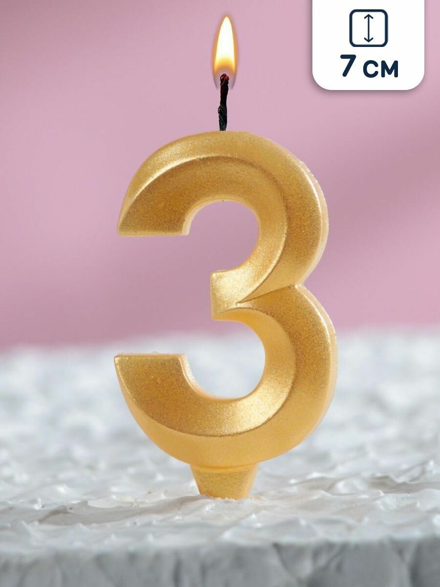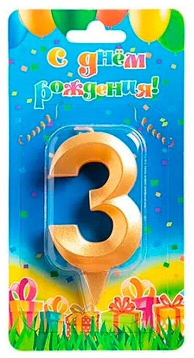Парафиновая праздничная свеча для торта фигура цифра 3 высотой 7,5 см (вместе со шпажкой) золотистого цвета - стильное и яркое украшение для торта, которое сделает ваше торжество неповторимым. Свеча грань цифра три представляет собой золотую свечу в форме цифры, подходит для любого мальчика, девочки, девушки, друга, подруги, ваших дорогих и любимых. Свечки фигурки для торта детские и взрослые станут отличным дополнением на детский день рождения, юбилей и любой другой праздник и порадуют именинника. Свечи с держателями долго горят и надежно держатся на десерте. Набор свечей на торт - отличный декор для торта или кексов на день рождения, рождение ребенка, не оставят равнодушным ваших самых родных людей. Необычный стильный дизайн подойдет любому празднику, и свечка топпер подойдет для любого десерта и торжества. Материал: высококачественный парафин, который не трескается при горении.