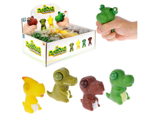 Детская игрушка-жмяка от бренда 1TOY пучеглаз-антистресс представлена в форме динозавриков. Яркие динозаврики поднимут настроение, уберут тревожность, а также будут развивать мелкую моторику ребенка! При сжатии игрушки в руке, у динозаврика забавно выпучиваются глаза. Игрушка произведена из полимерных материалов и предназначена для детей от трех лет.