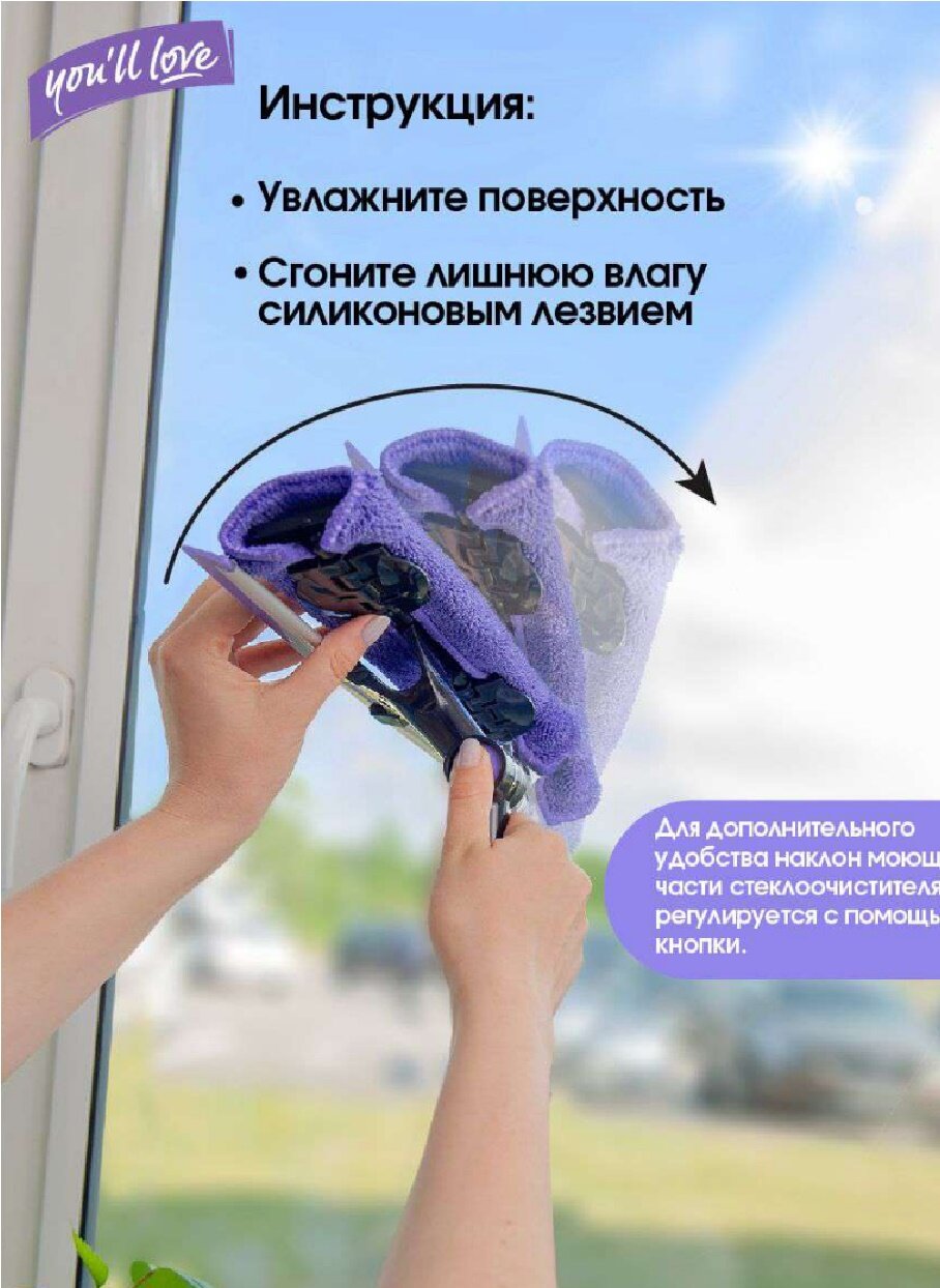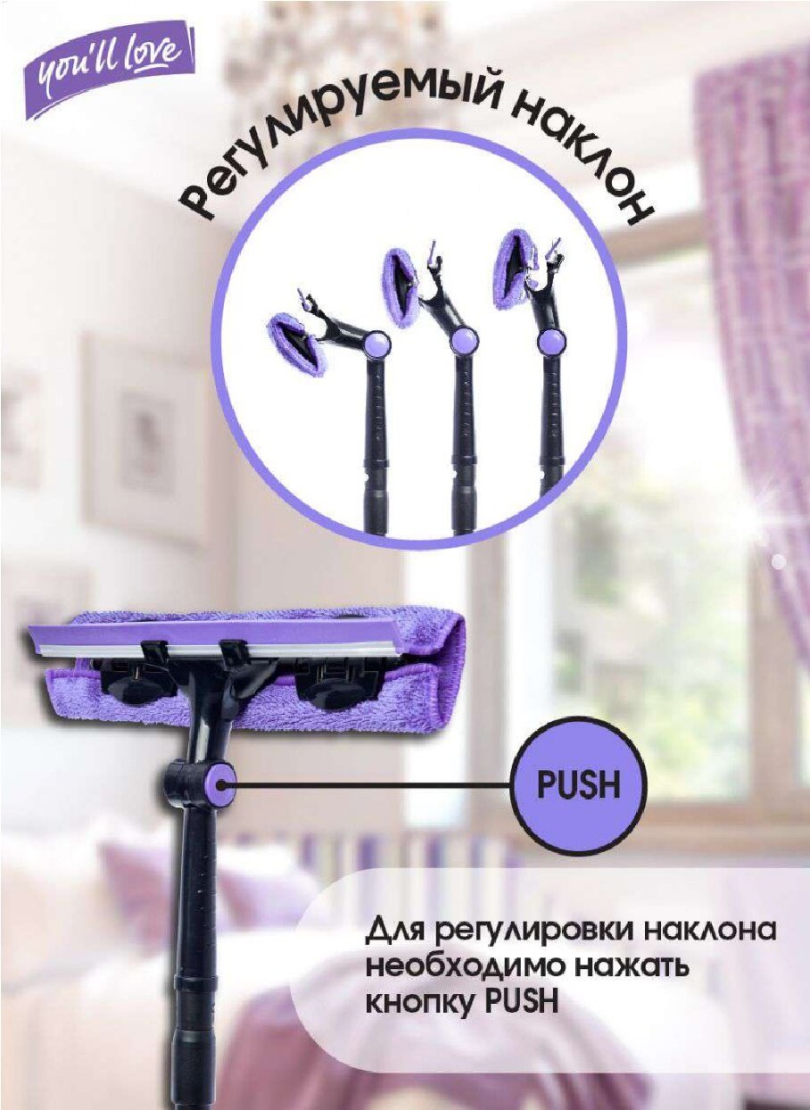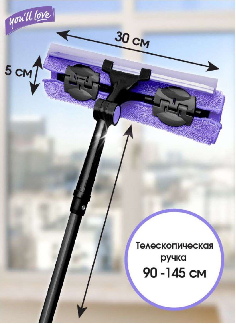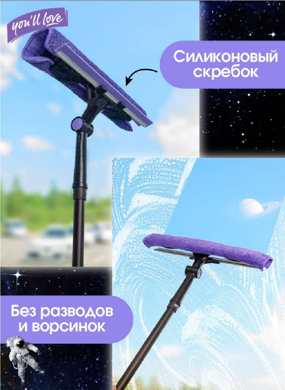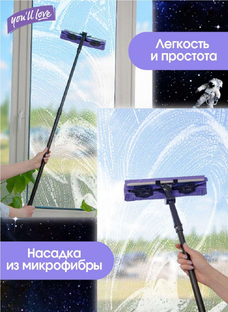 Стекломой You'll love Clean Space Сириус с 2-мя съемными салфетками и телескопической рукояткой