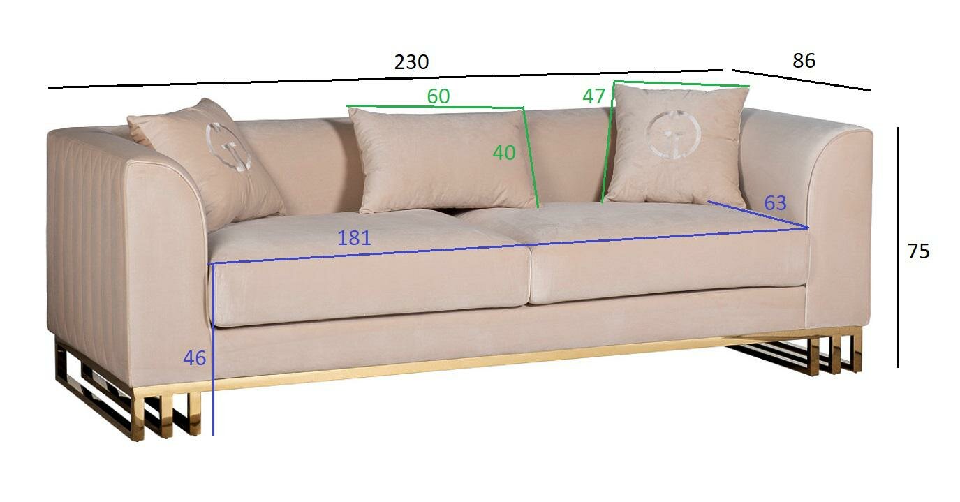 Диван Lucerne трехместный велюровый бежевый (102AN-20493) Garda Decor
