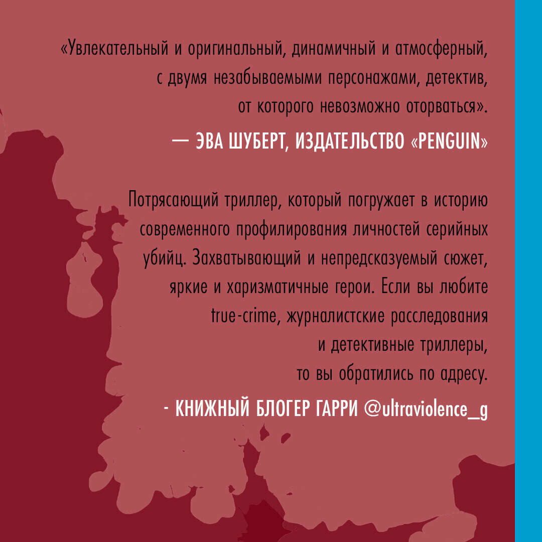 «Увлекательный и оригинальный, динамичный и атмосферный, с двумя незабываемыми персонажами, детектив, от которого невозможно оторваться». — Эва Шуберт, издательство «Penguin»