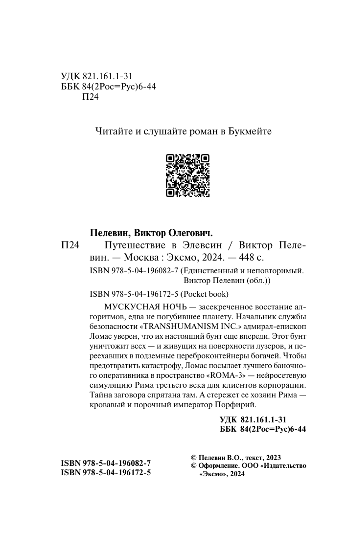 Книга: Путешествие в Элевсин (Виктор Олегович Пелевин); Эксмо, 2025
