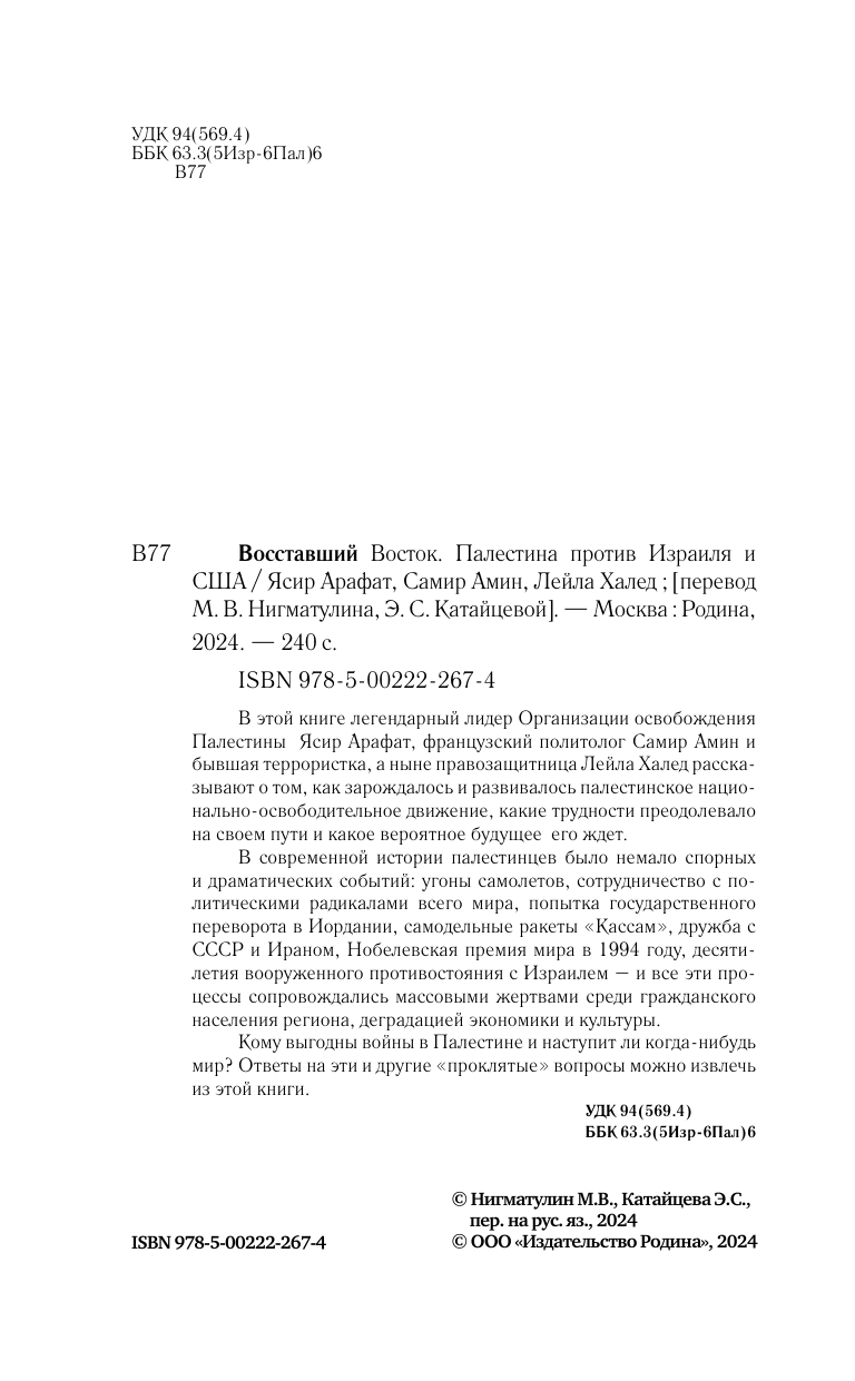 Восставший Восток. Палестина против Израиля и США (Самир Амин, Лейла Халед, Ясир Арафат); Родина, 2024