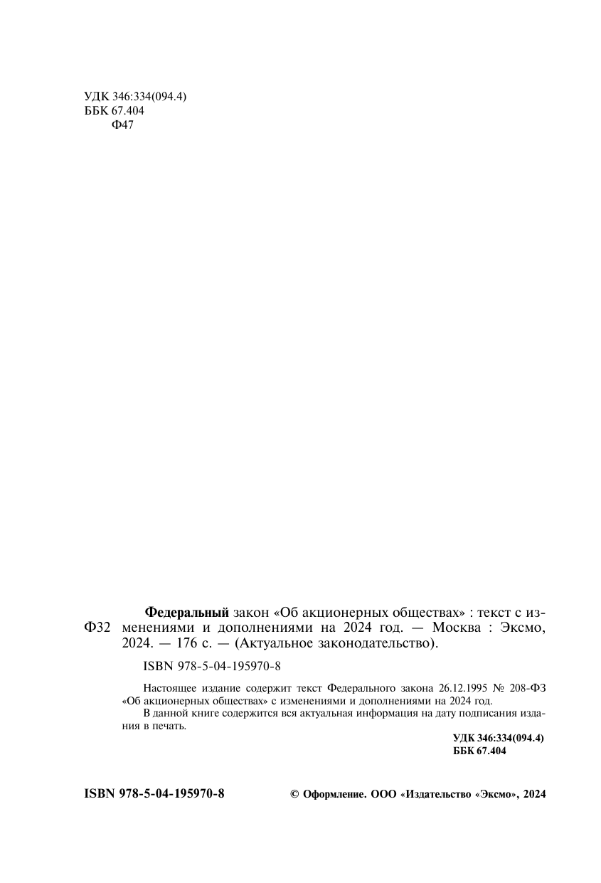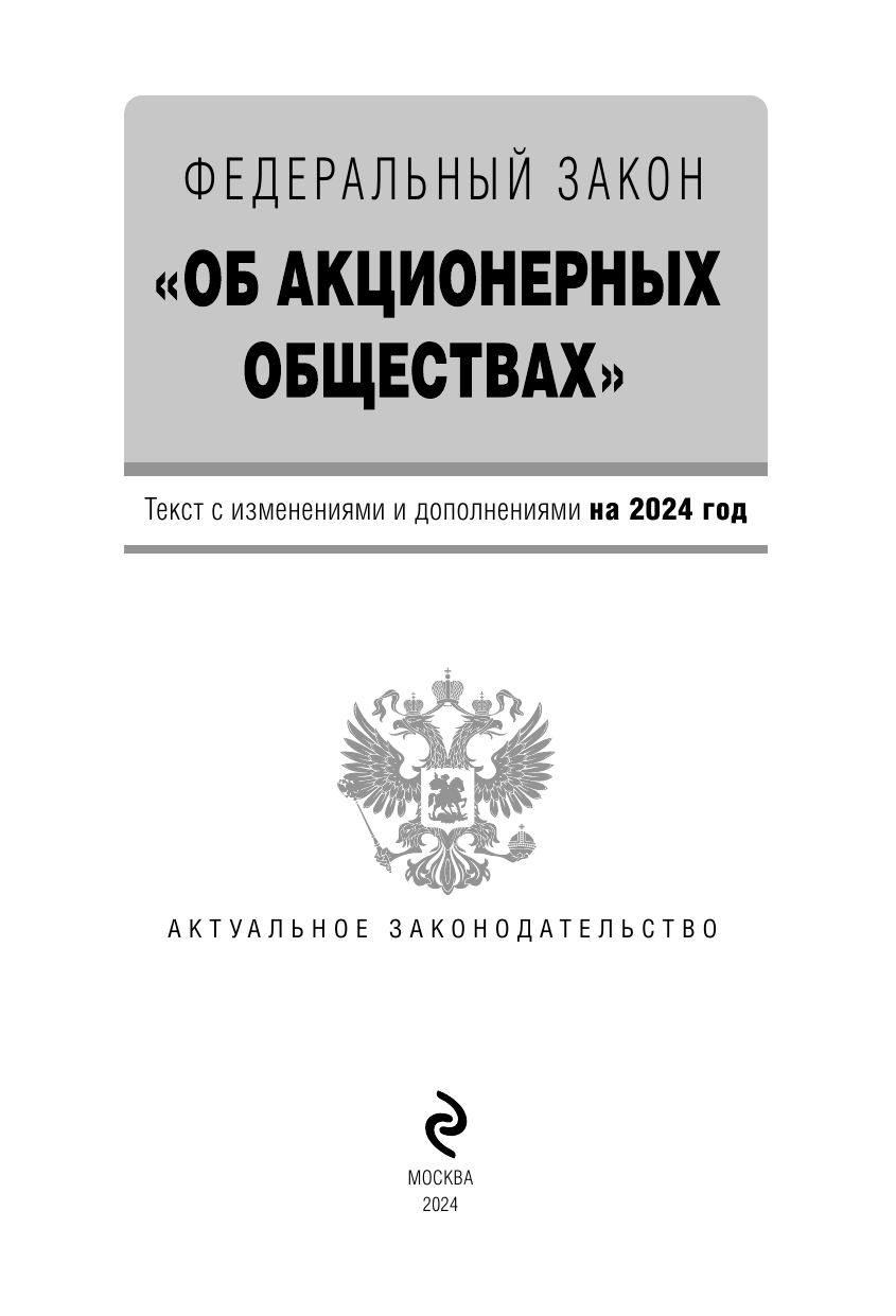 ФЗ "Об акционерных обществах". В ред. на 2024 / ФЗ № 208-ФЗ (без автора); ООО "Издательство "Эксмо", 2024