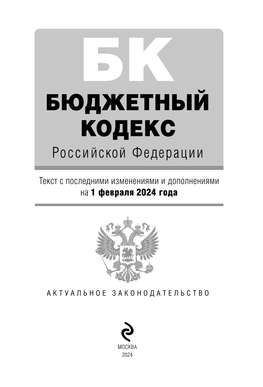 Бюджетный кодекс РФ. В ред. на 01.02.24 / БК РФ (без автора); ООО "Издательство "Эксмо", 2024