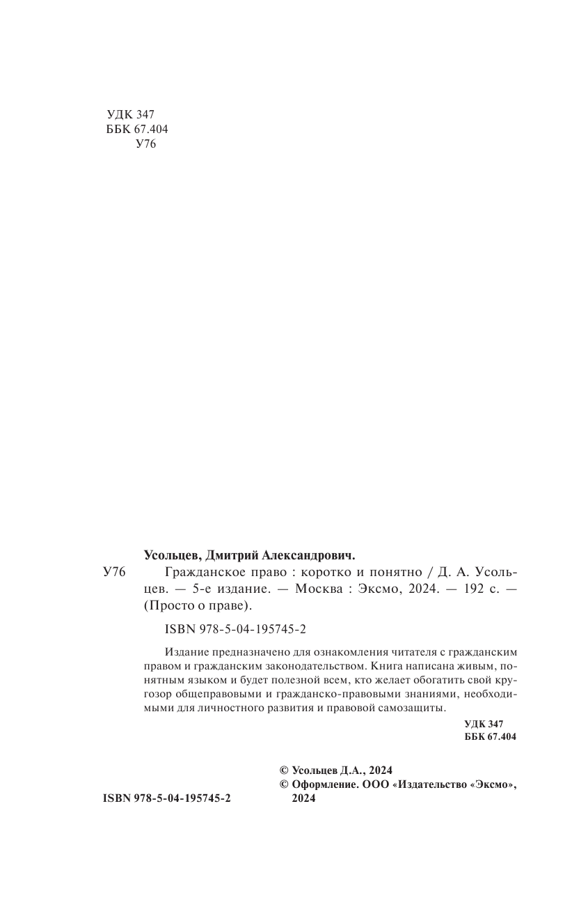 Гражданское право. Коротко и понятно. 5-е издание (Усольцев Дмитрий Александрович); ООО "Издательство "Эксмо", 2024