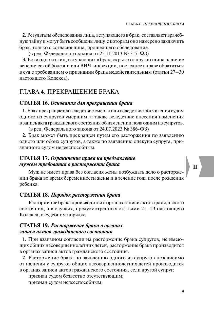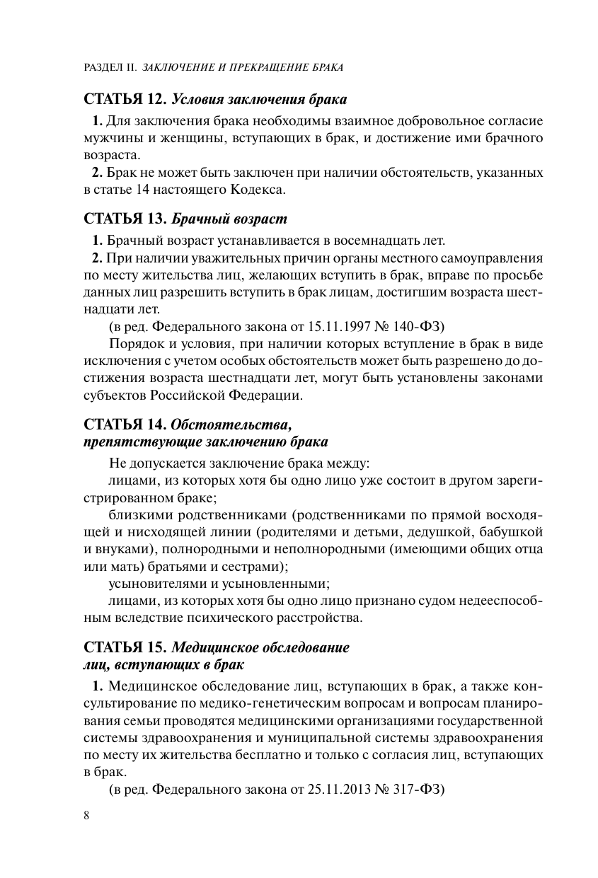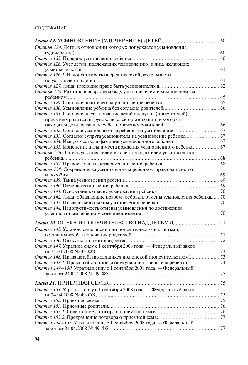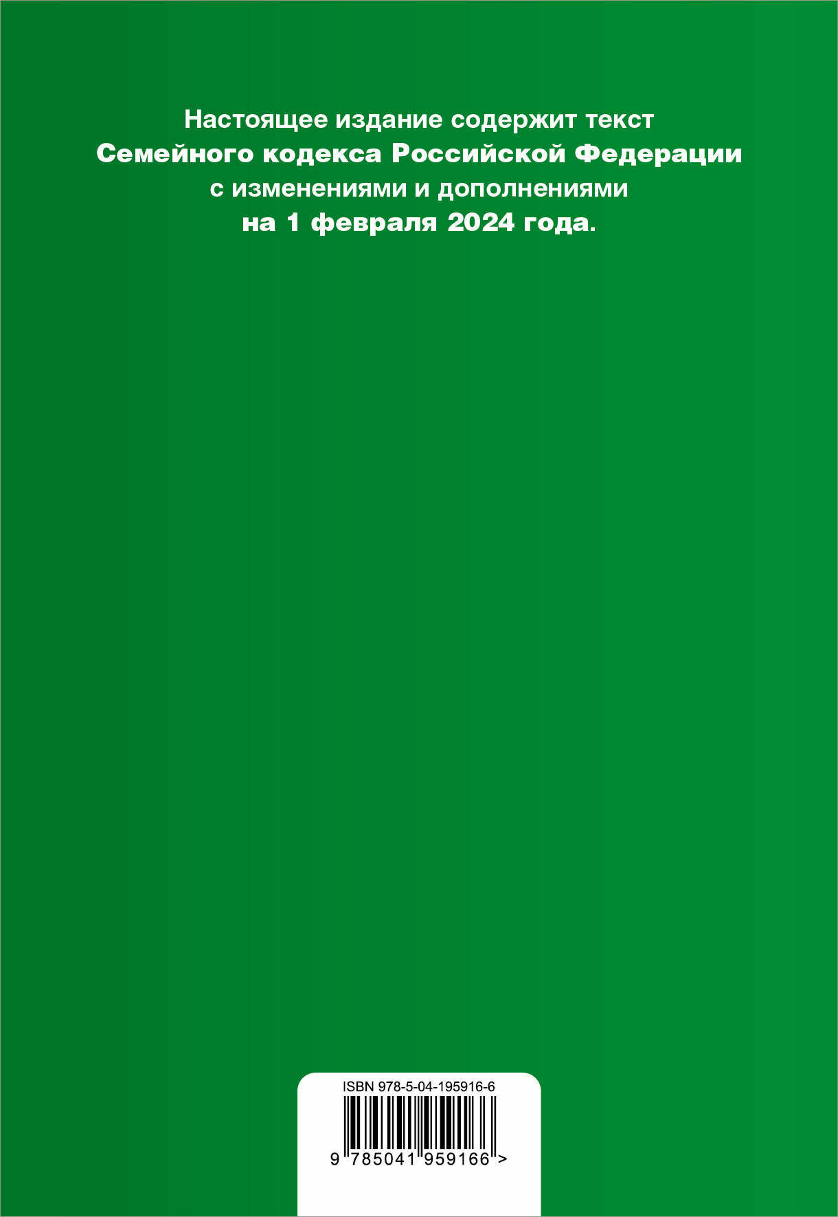 Настоящее издание содержит текст Семейного кодекса Российской Федерации с изменениями и дополнениями на 1 февраля 2024 года с удобной навигацией и таблицей изменений. Если есть изменения, вступающие в силу позднее, то вместе с редакцией нормы, действующей на эту дату, приводится норма в новой редакции и указывается дата, с которой она вступает в силу.