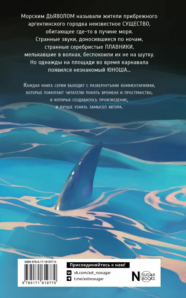 Морским дьяволом называли жители прибрежного аргентинского городка неизвестное существо, обитающее где-то в пучине моря. Странные звуки, доносившиеся по ночам, странные серебристые плавники, мелькавшие в волнах, беспокоили их не на шутку. Но однажды на площади во время карнавала появился незнакомый юноша… Эта драматичная история Ихтиандра, умевшего дышать под водой, но совершенно не приспособленного жить среди людей, на самом деле рассказывает нам о милосердии и любви, о хитрости и коварстве, о фантастических технологиях и о свободе.
