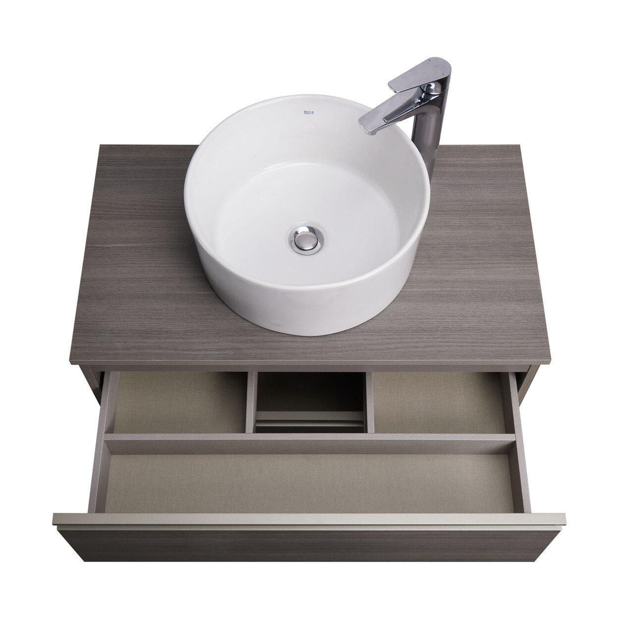 Модуль под раковину THE GAP в темном древесном декоре обладает универсальным современным дизайном и функциональностью. Корпус и фасады выполнены из влагостойкой ЛДСП в древесном декоре. Металлическая ручка во всю ширину модуля удобна в использовании и вместе с направляющими с функцией silent system делают процесс открывания ящиков легким и приятным. Нижняя часть ручки обработана под углом, что предотвращает скопление воды и пыли. Ручка защищает фасады модуля от попадания капель воды с раковины, а также защищает углы модуля от ударов и износа. Внутренняя отделка ящиков выполнена в цвете бежевый текстиль, приятна на ощупь и предотвращает скольжение предметов. Пространство верхнего ящика разделено на три части, что позволяет хранить предметы для ванной комнаты в идеальном порядке. Благодаря универсальному дизайну модули под раковину THE GAP могут сочетаться с различными вариантами зеркал и зеркальных шкафов из коллекций THE GAP ORIGINAL, ANETO, VICTORIA NORD и VICTORIA. Сифон для раковины приобретается отдельно.Описание коллекцииThe GAP – свежая и минималистичная коллекция от испанского бренда Roca позволяет создать стильное пространство ванной комнаты. Мебельные решения The Gap отличаются компактностью и функциональностью, позволяя оптимизировать пространство ванной комнаты. Полностью интегрированные ручки придают серии современный элегантный вид.