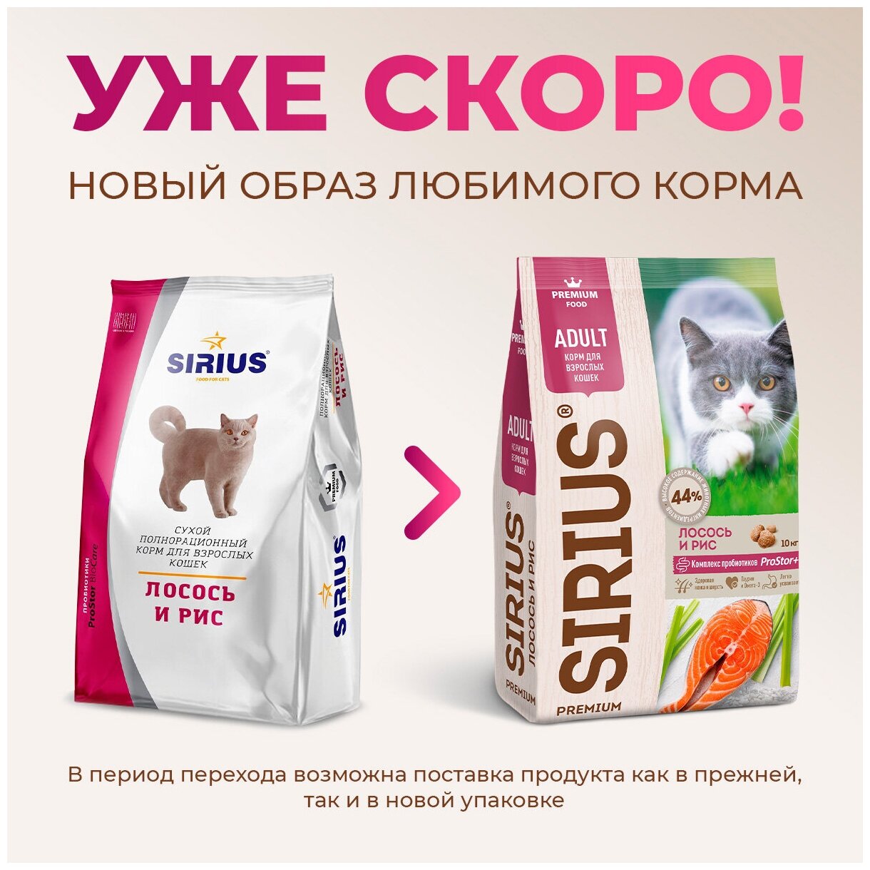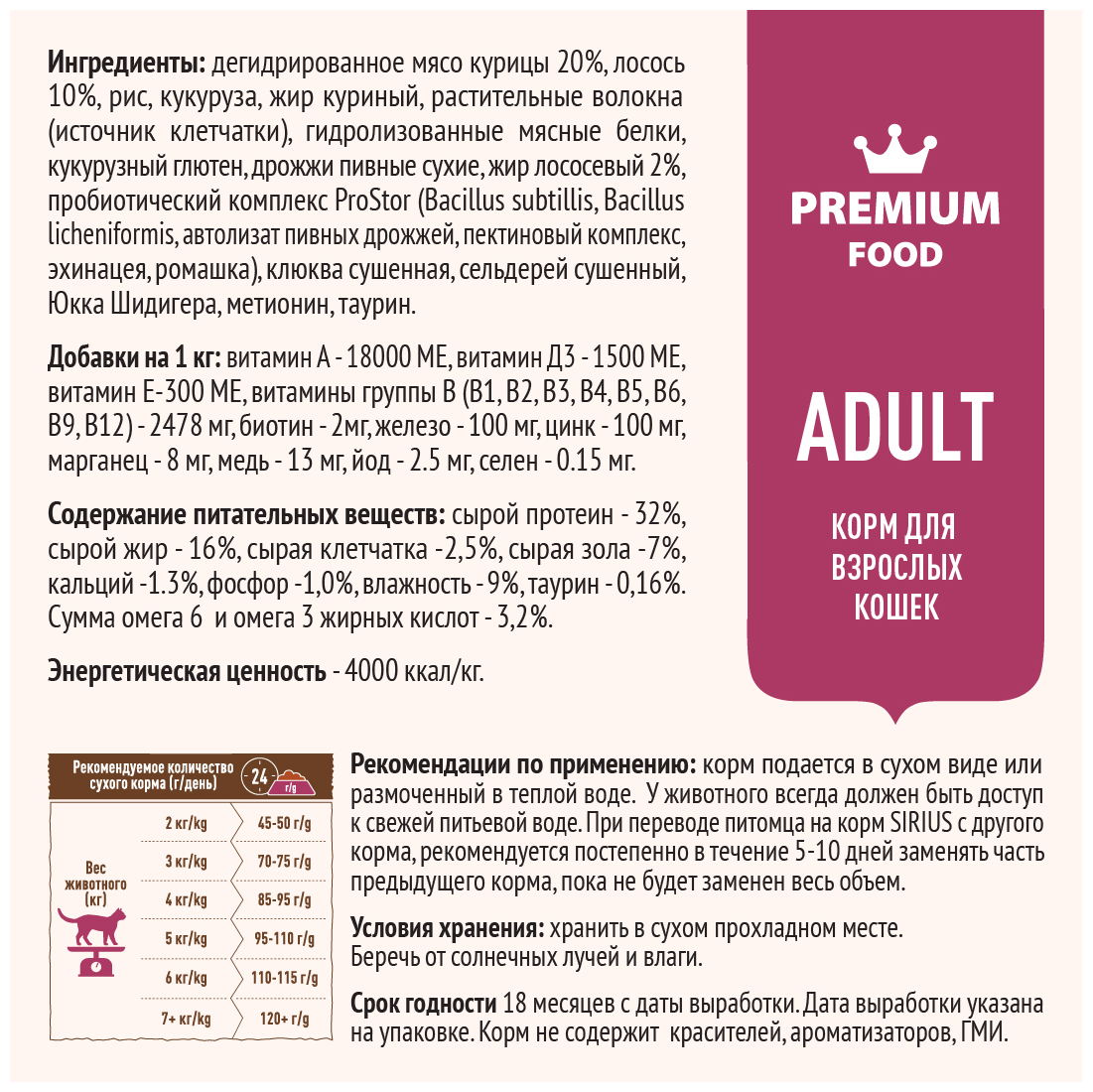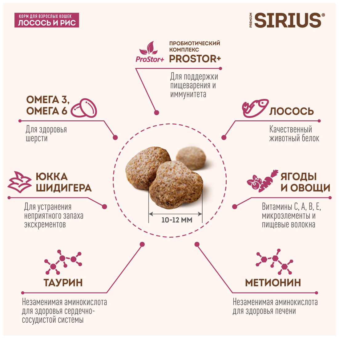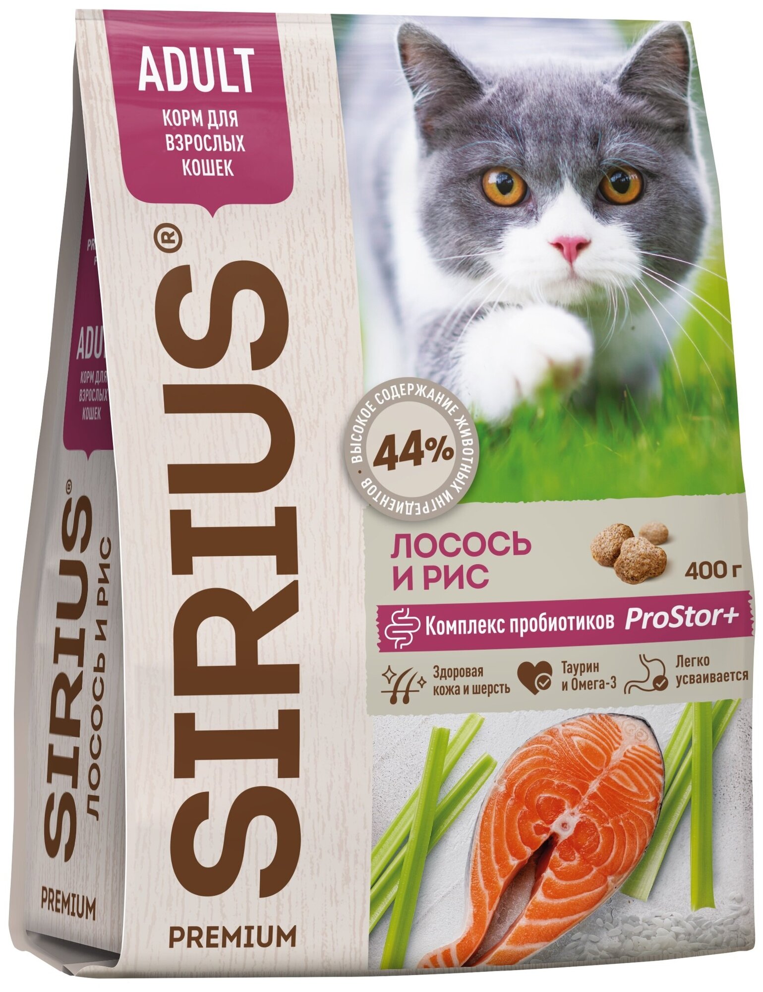 Сухой корм для взрослых кошек SIRIUS лосось и рис 15 кг