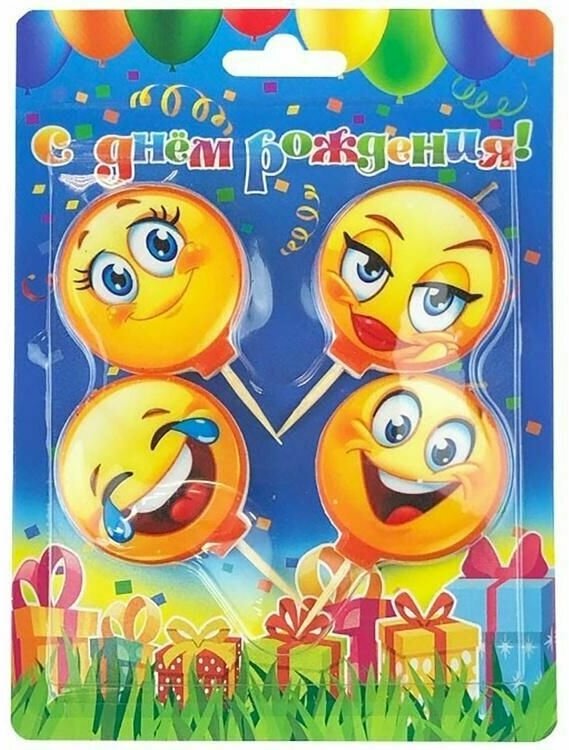 Набор праздничных свечей на деревянной шпажке Смайлики 4 шт -