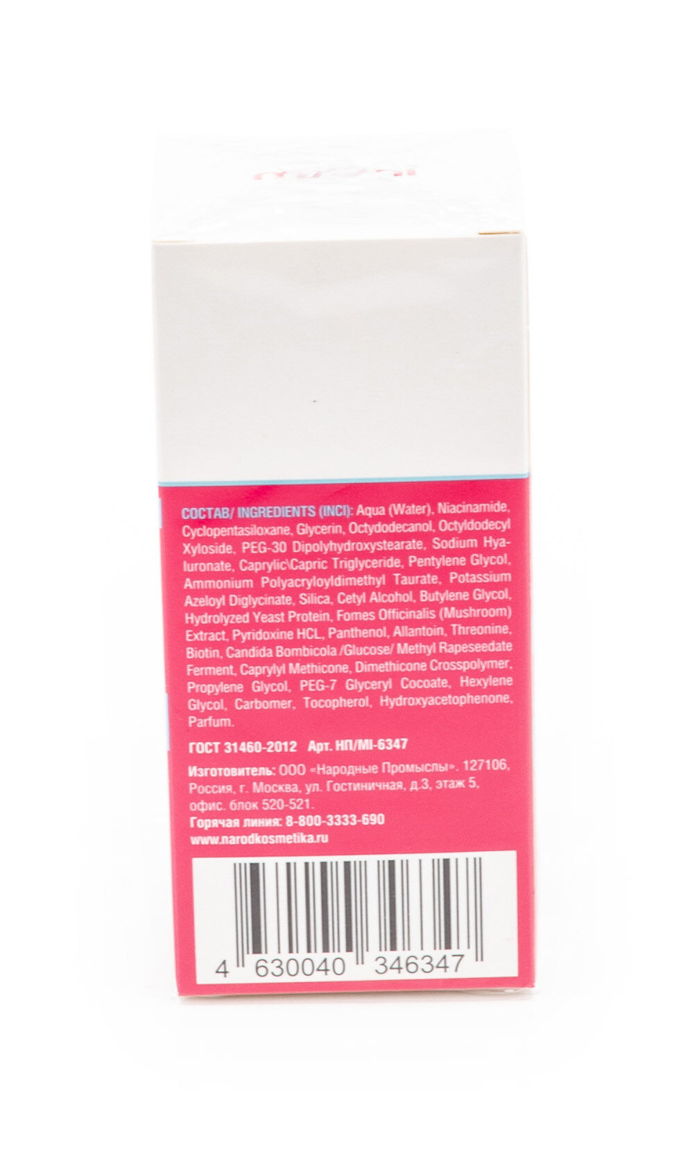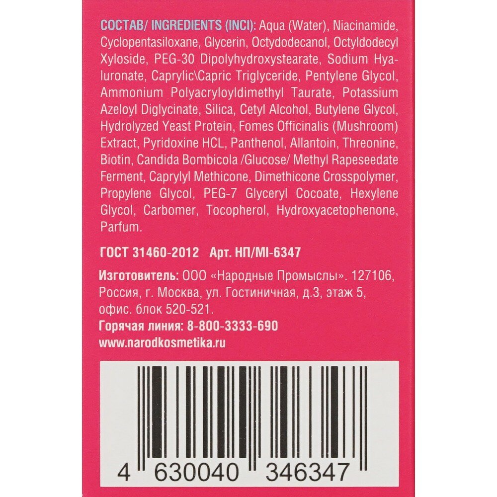 | Состав | Aqua (Water), Niacinamide, Cyclopentasiloxane, Glycerin, Octydodecanol, Octyldodecyl Xyloside, PEG-30 Dipolyhydroxystearate, Sodium Hyaluronate, Caprylic\Capric Triglyceride, Pentylene glycol, Ammonium Polyacryloyldimethyl Taurate, Potassium Azeloyl Diglycinate, Silica, Cetyl Alcohol, Butylene Glycol, Hydrolyzed Yeast Protein, Fomes Officinalis (Mushroom) Extract, Pyridoxine HCL, Panthenol, Allantoin, Threonine, Biotin, Candida Bombicola /Glucose/ Methyl Rapeseedate Ferment, Caprylyl Methicone, Dimethicone Crosspolymer, Propylene Glycol, PEG-7 Glyceryl Cocoate, Hexylene Glycol, Carbomer, Tocopherol, Hydroxyacetophenone, Parfum. |
