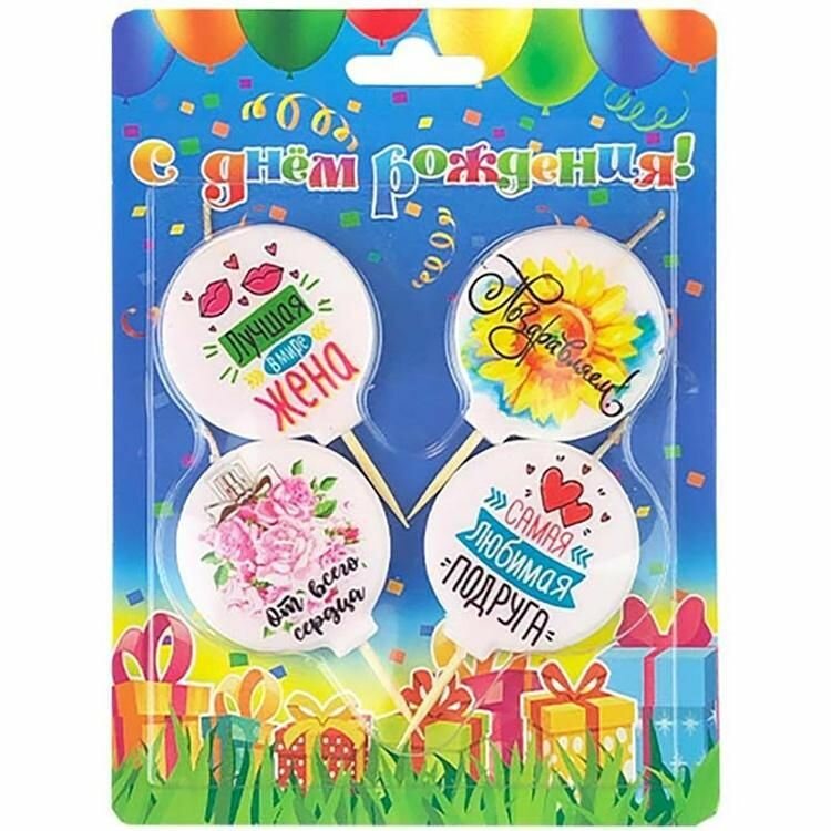 Набор праздничных свечей на деревянной шпажке "Женские". Изготовлен из безопасного пищевого парафина. Количество в упаковке :4шт.