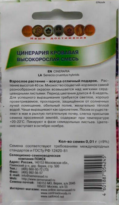 Семена Поиск Цинерария Кровавая Высокорослая Смесь 001 г