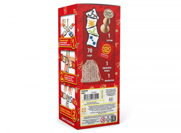 | Комплектация | 1 тотем, 70 карточек, тканевый мешочек, правила игры. |