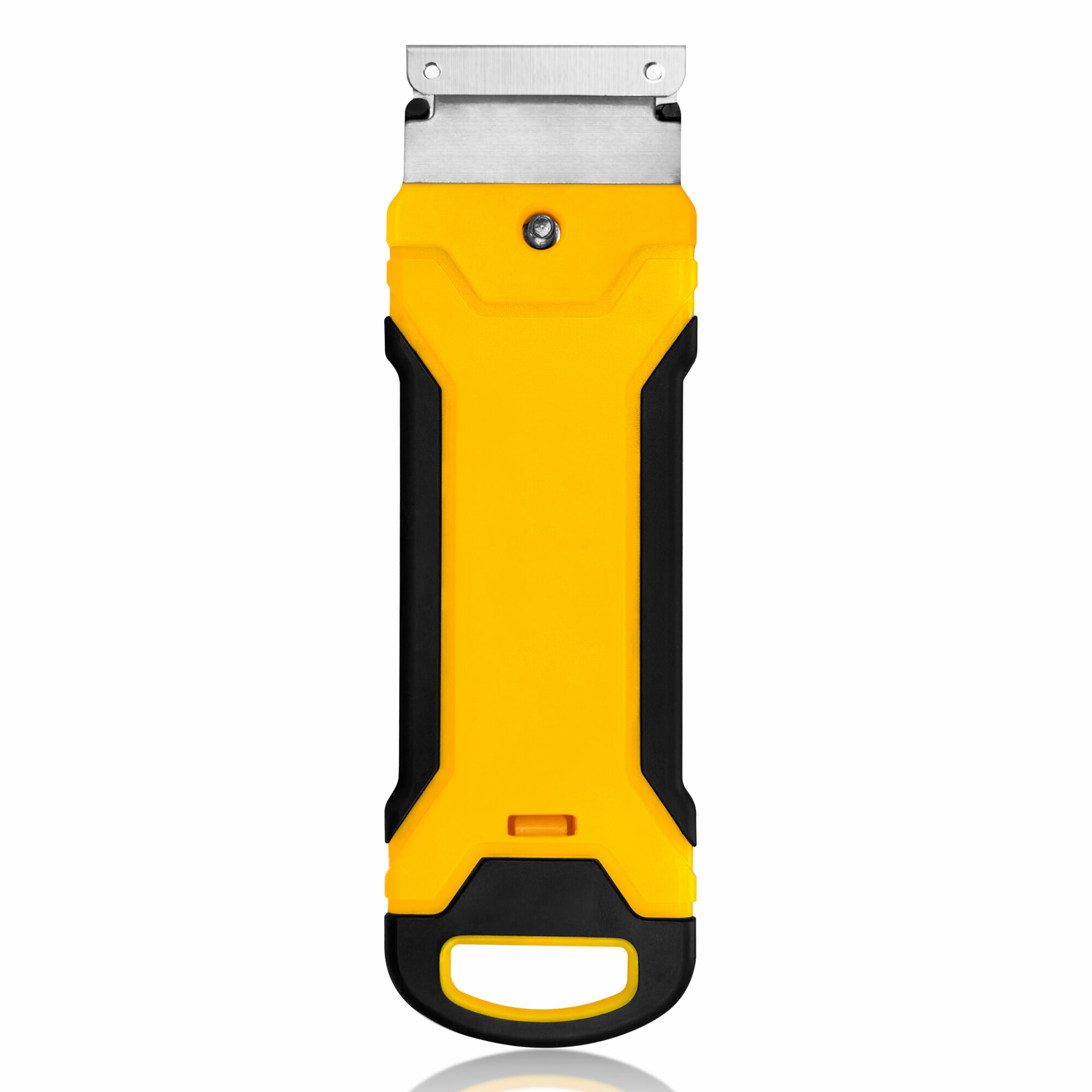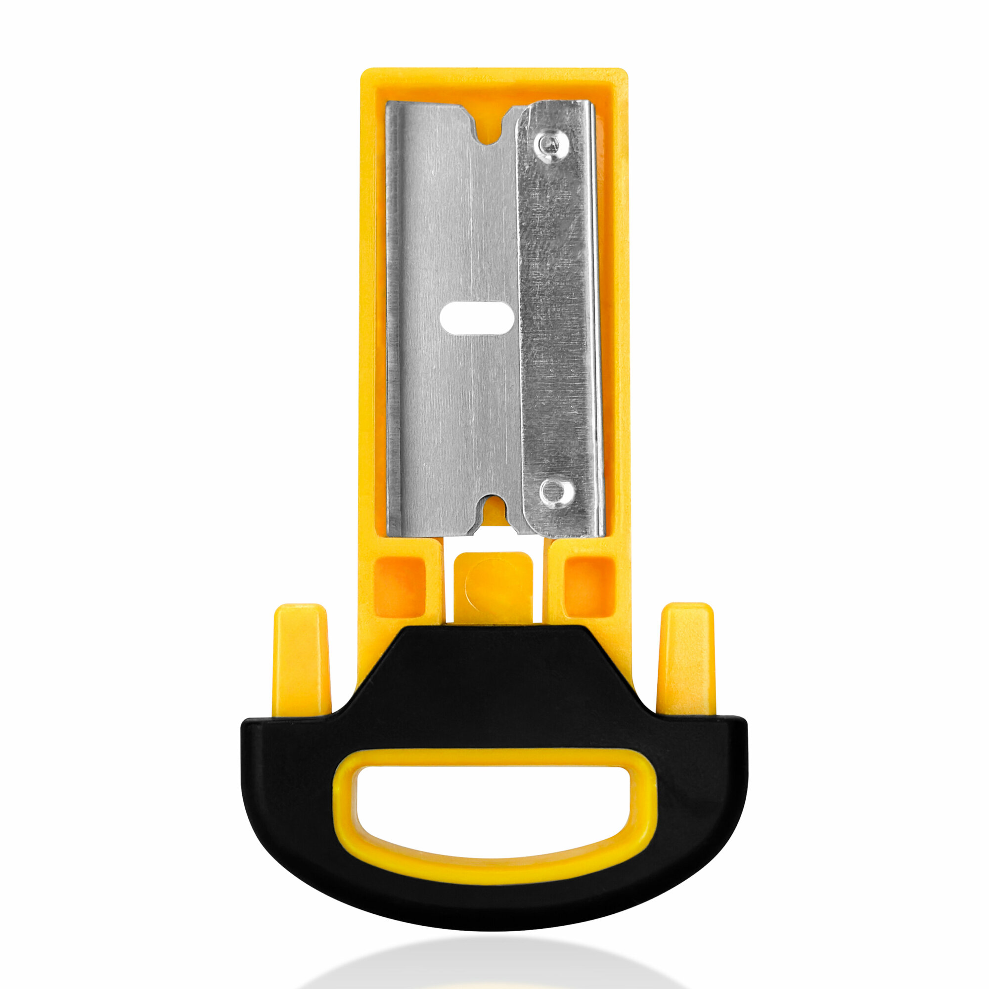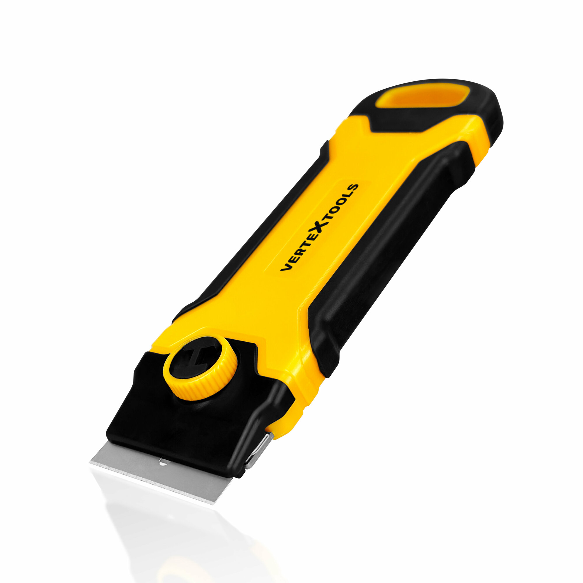 Скребок универсальный VertexTools PROFI CLEAN предназначен для бережного и эффективного удаления свежих или застарелых загрязнений таких как жир, смола, жевательная резинка, битум или краска со стеклокерамических, кафельных, ламинированных и других гладких поверхностей.Надежная конструкция гарантирует длительный срок службы.Скребок выполнен из прочного ABS пластика с TPR покрытием корпуса, препятствуют скольжению в руках и обеспечивают удобство в работе.Механизм легкой замены лезвия обеспечит быструю, безопасную смену.В комплекте всего 5 лезвий из нержавеющей стали, 1 расположено в держателе, 4 в специальном отделении корпуса.Ширина лезвия 39 мм.