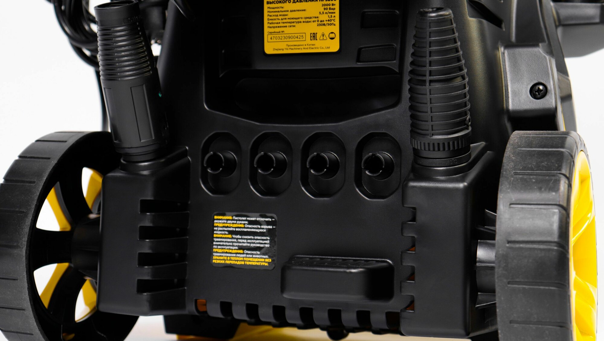 В качестве емкости для моющего средства используется пеногенератор. Держатель для шнура, шланга и пистолета для удобного хранения. Электродвигатель с термозащитой защищает от перегрузок.