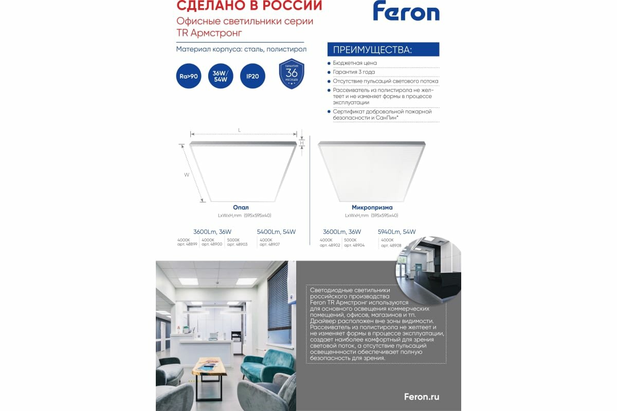 На сегодняшний день товар «Офисный светильник серии TR Армстронг 36Вт 4000К CRI90 микропризма Feron (48902)» можно купить с кешбеком в 4 магазинах: Santehnika-room, donplafon, Сантехника Тут, Яндекс.Маркет