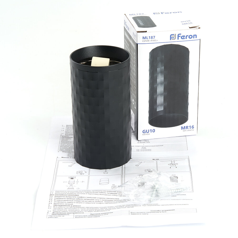 Светильник потолочный Feron ML187 Barrel PIXEL MR16 GU10 35W 230V чёрный ml187 barrel pixel mr16, gu10, 35w, 230v, черный