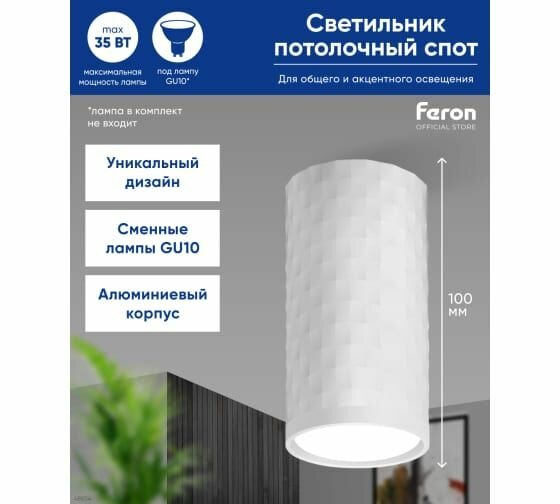 Сервис сравнения цен СкидкаГИД предлагает сравнить цены на товар «Светильник потолочный Feron ML187 Barrel PIXEL MR16 GU10 35W 230V белый ml187 barrel pixel mr16, gu10, 35w, 230v, белый»